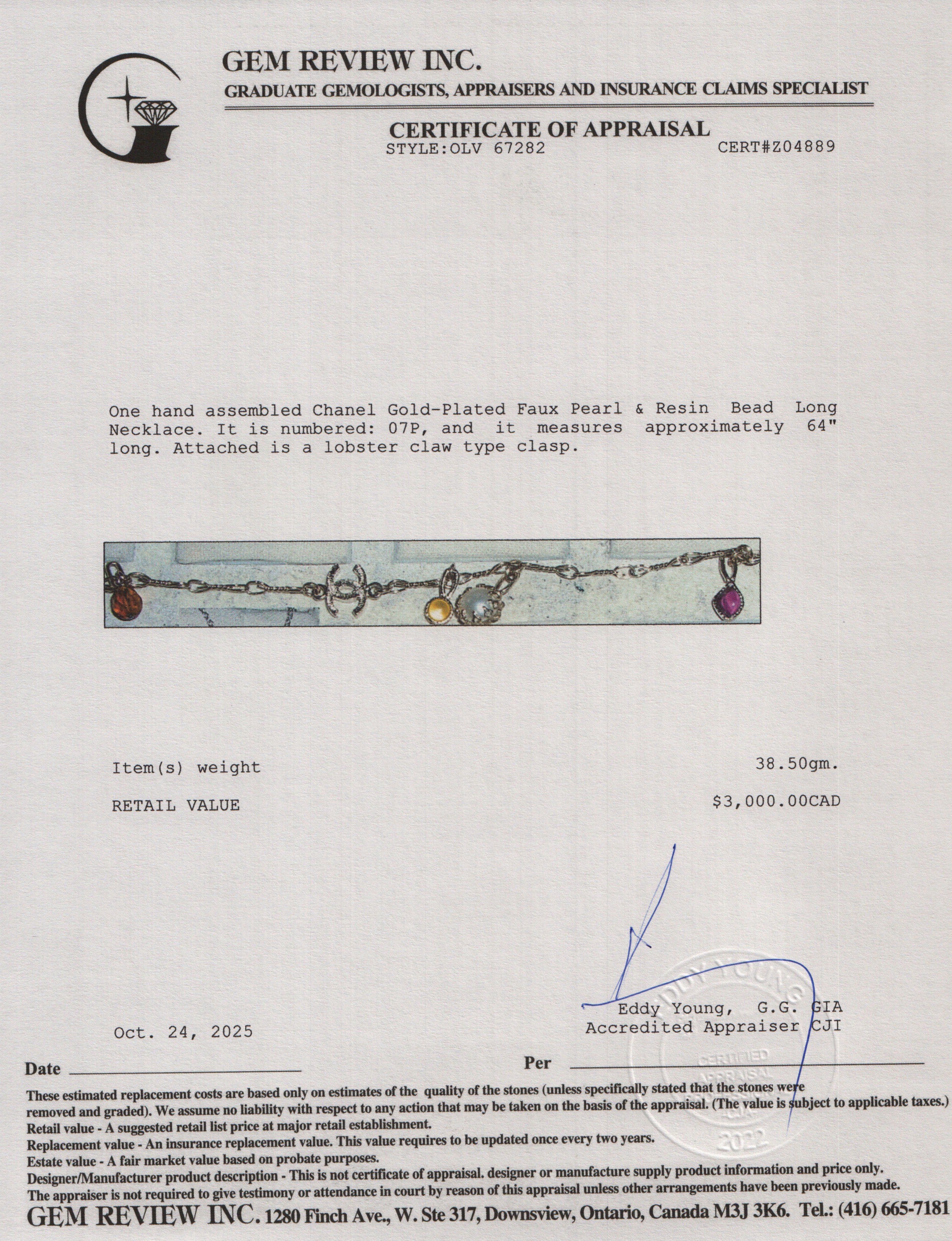 Gold-Plated Faux Pearl & Resin Bead Long Necklace w/ Box