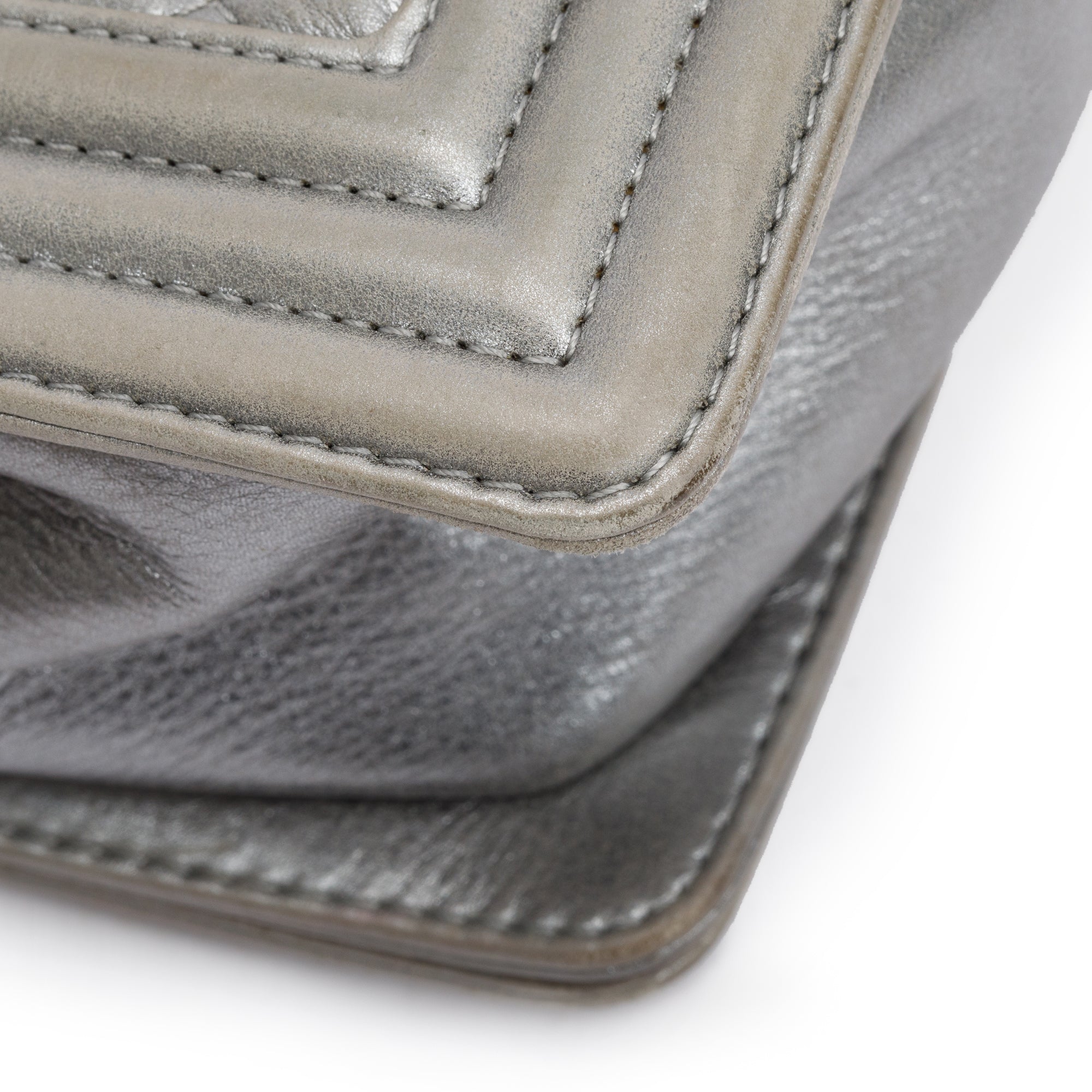 Grey Metallic Lambskin Leather Medium Boy Bag