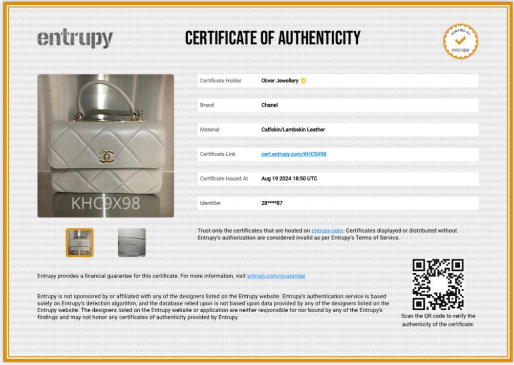 Dust Bag, Authenticity Card, Entrupy Certificate of Authenticity