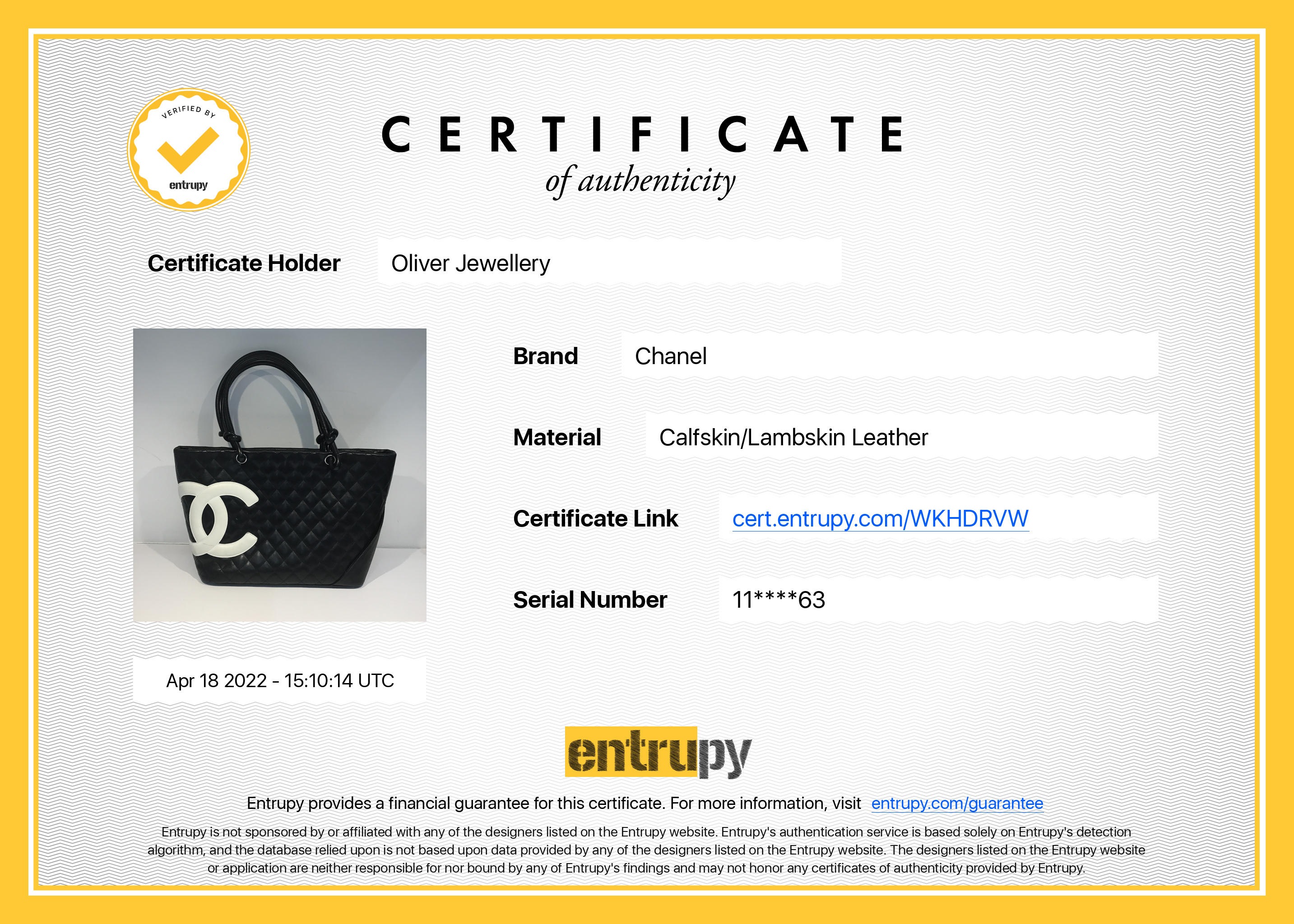 Included Items: Original Chanel Authenticity Card, Dust Bag & Entrupy Certificate of Authenticity #: WKHDRVW