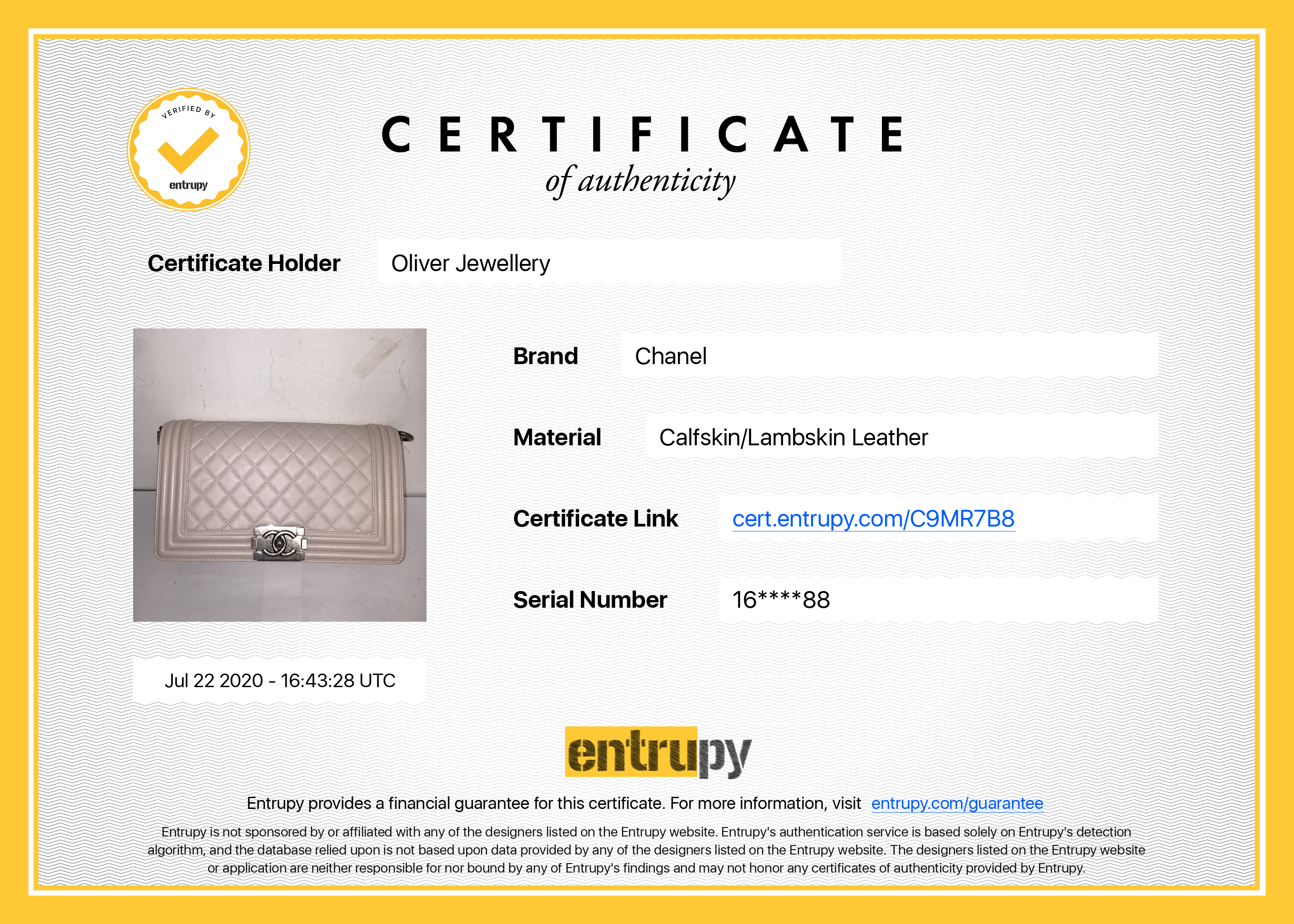 Included Items: Chanel Box, Authenticity Card, and Entrupy Certificate of Authenticity #C9MR7B8