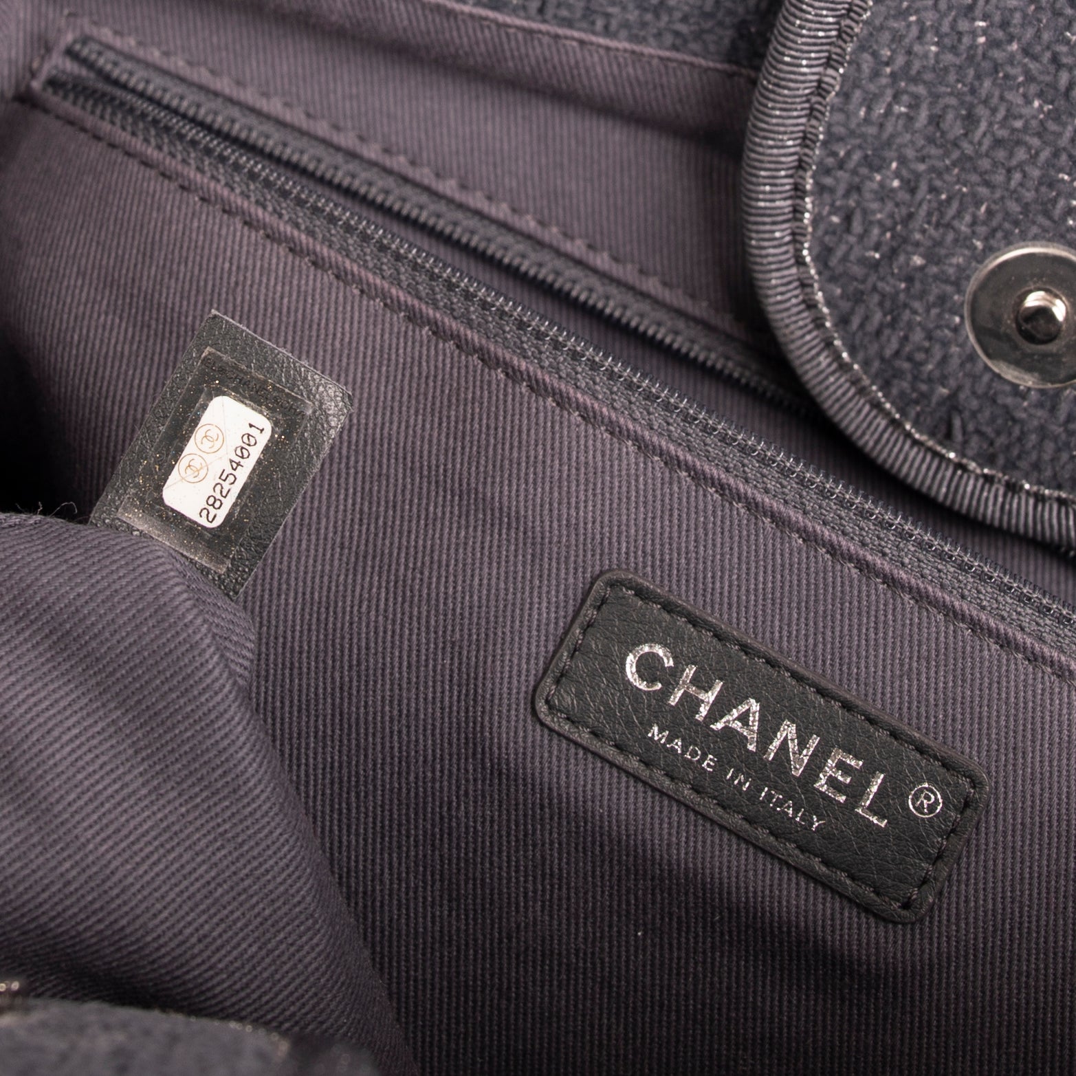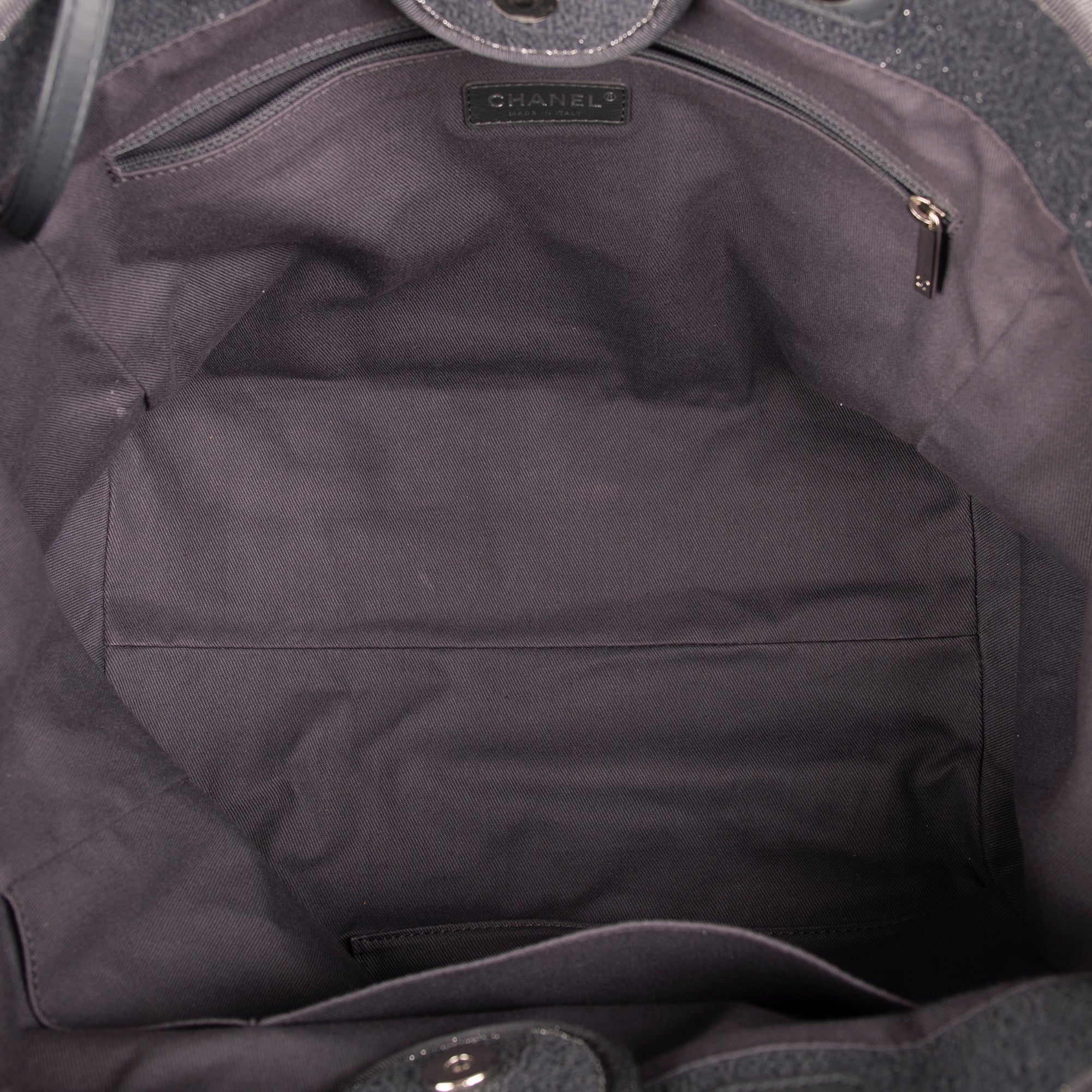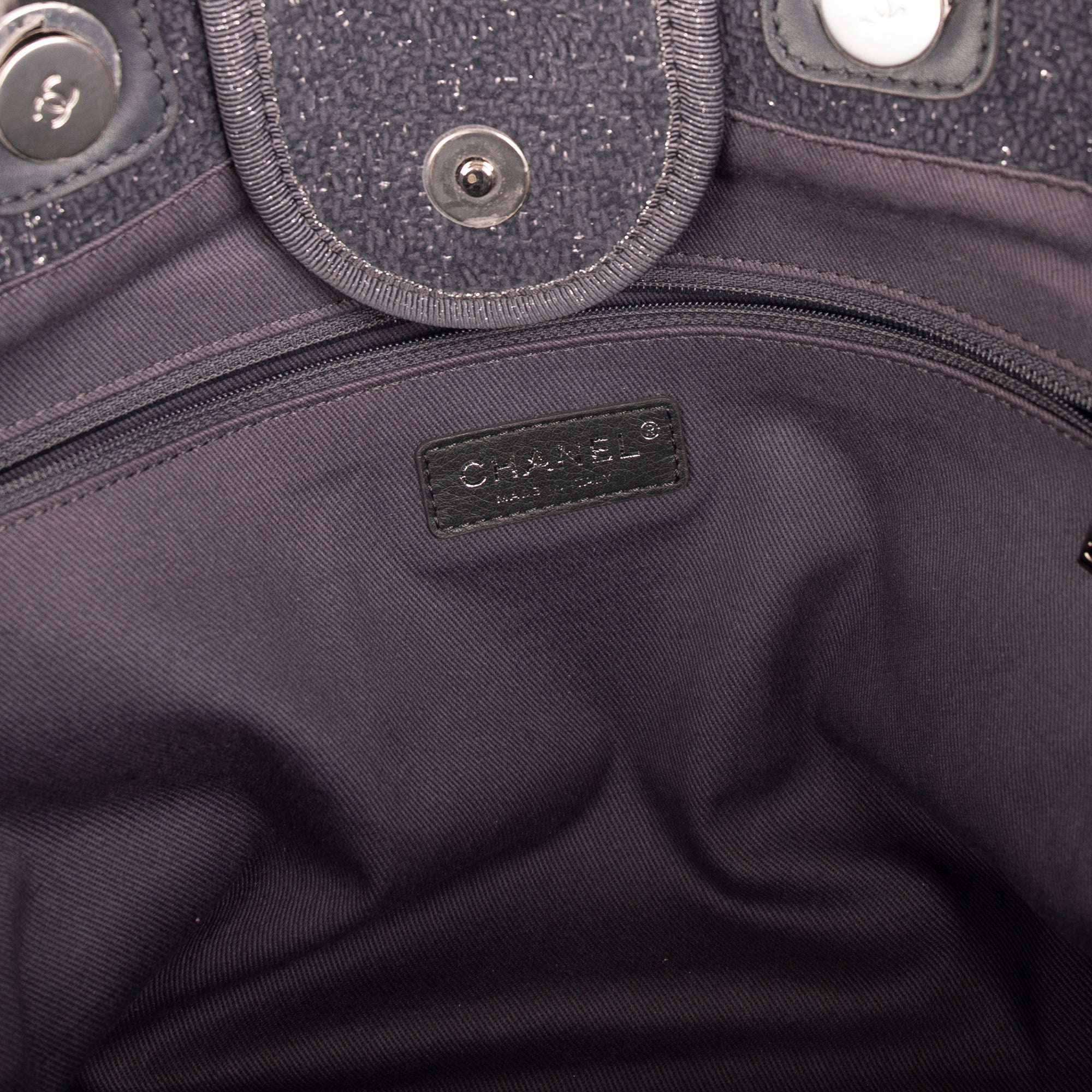 - Chanel Metallic Silver Print at Front