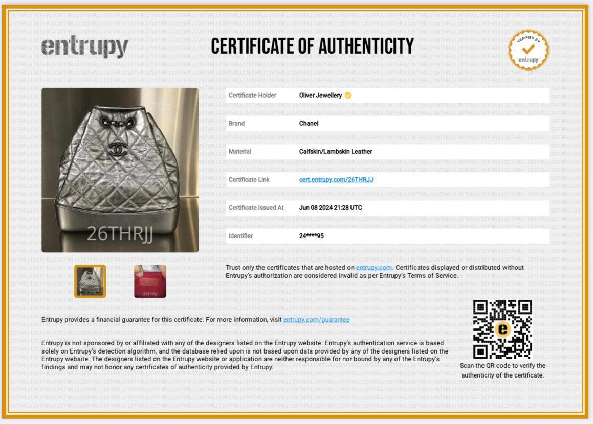 Authenticity Card, Entrupy Certificate of Authenticity