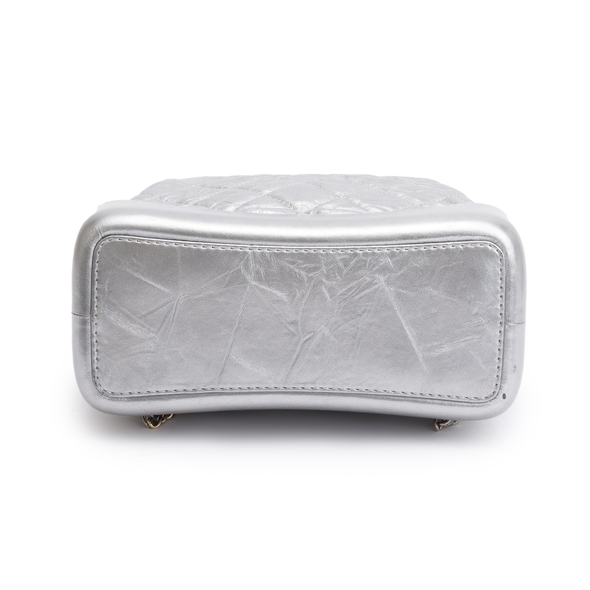 Metallic Silver Aged Calfskin Leather Small Gabrielle Backpack w/ Authenticity Card