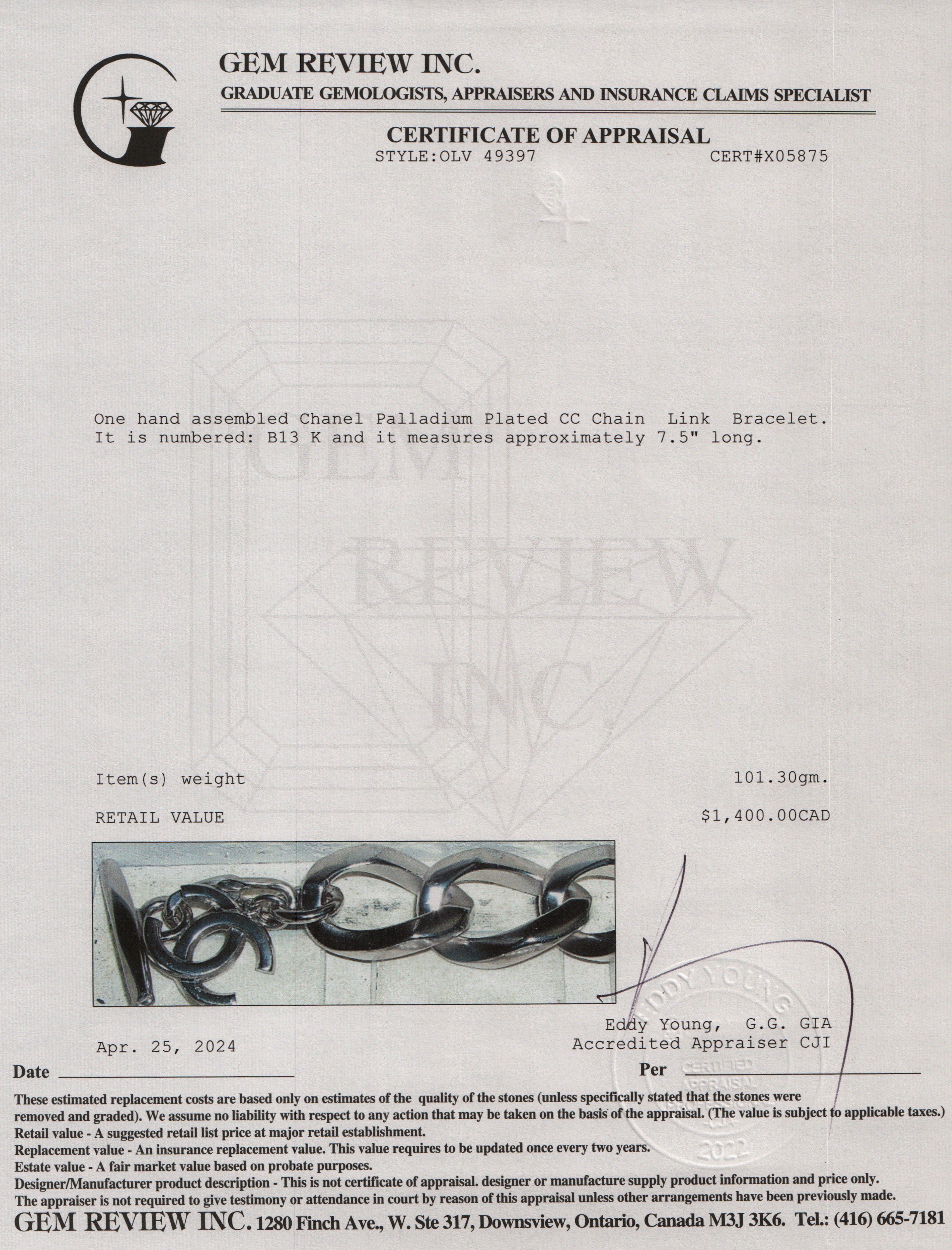 Palladium Plated CC Chain Link Bracelet w/ Box