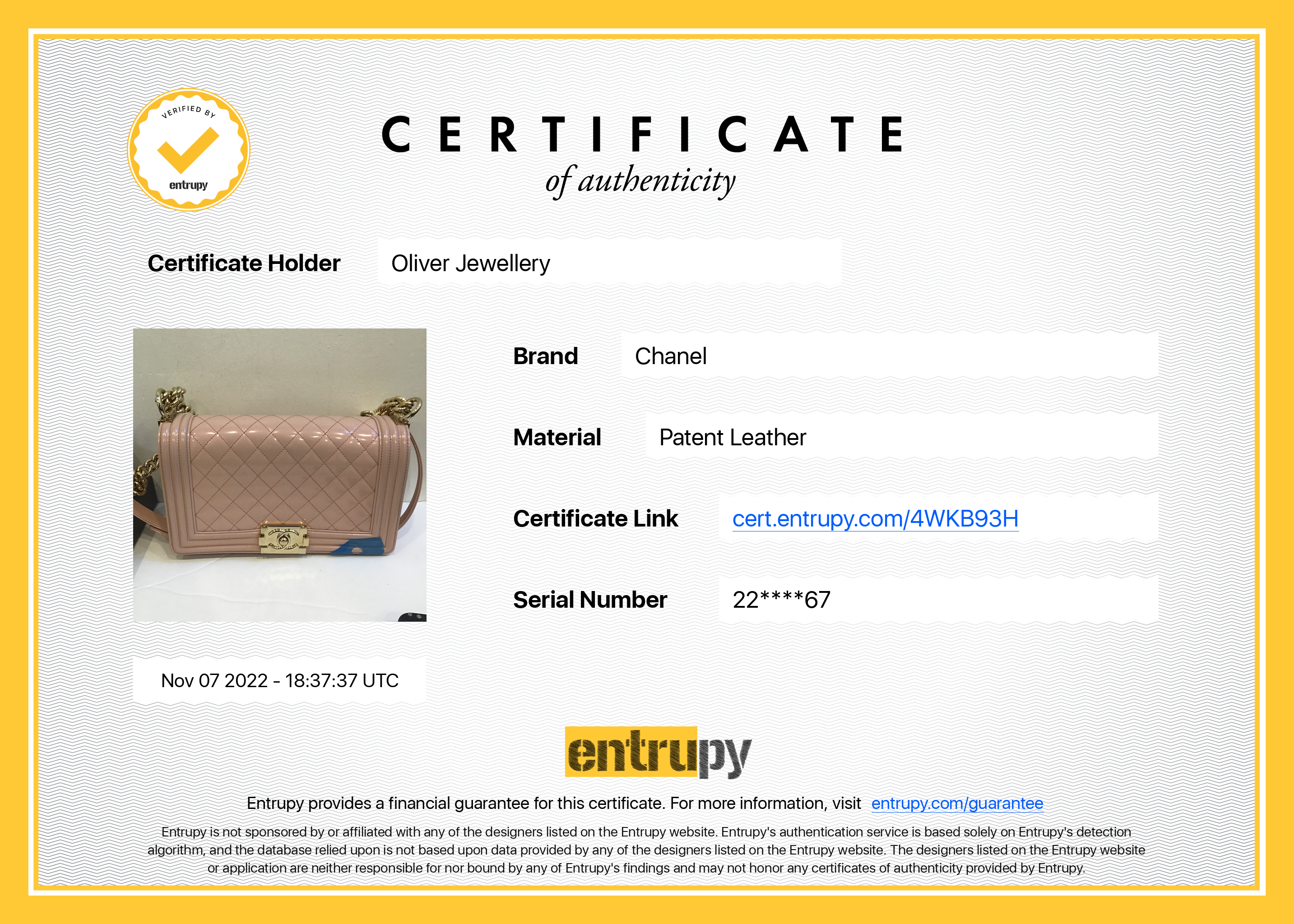 Box, Authenticity Card, Dust Bag, Entrupy Certificate of Authenticity