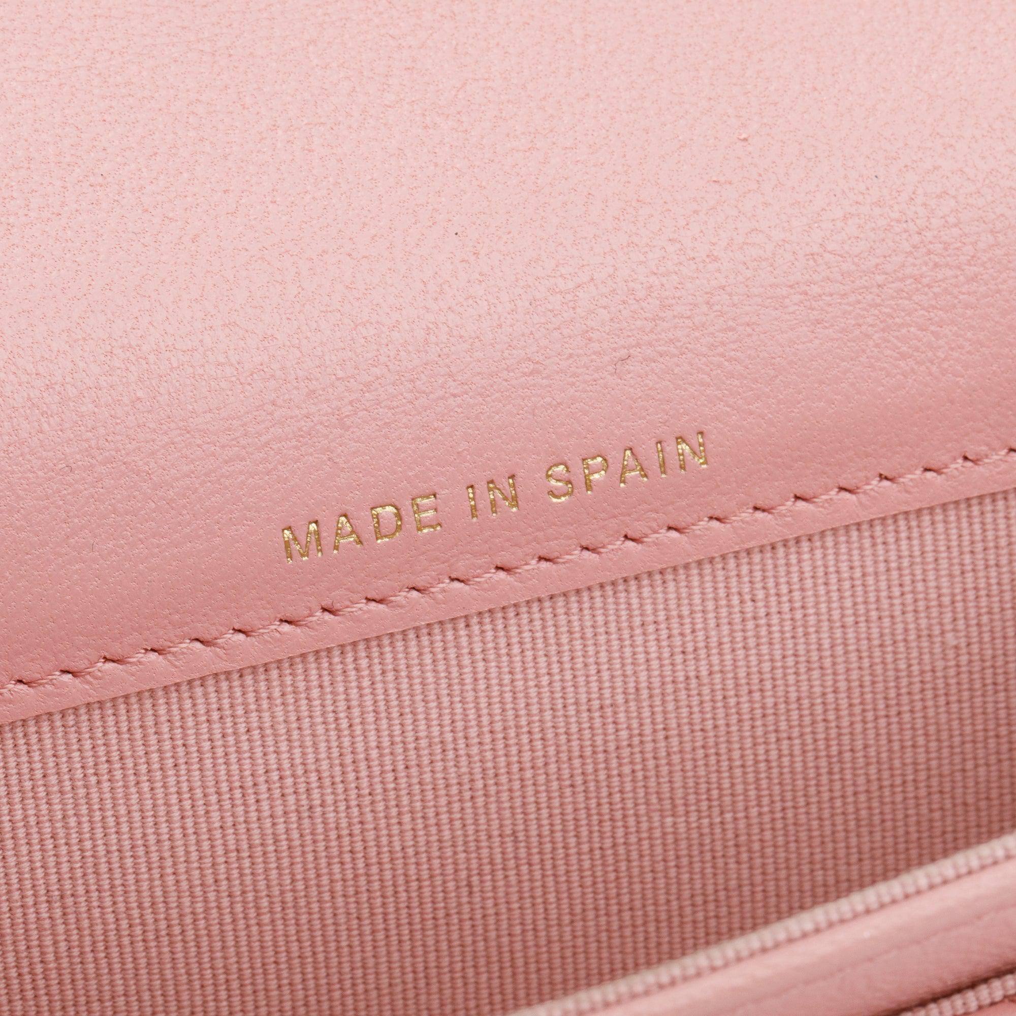 Pink Quilted Leather 19 Flap Card Holder w/ Box