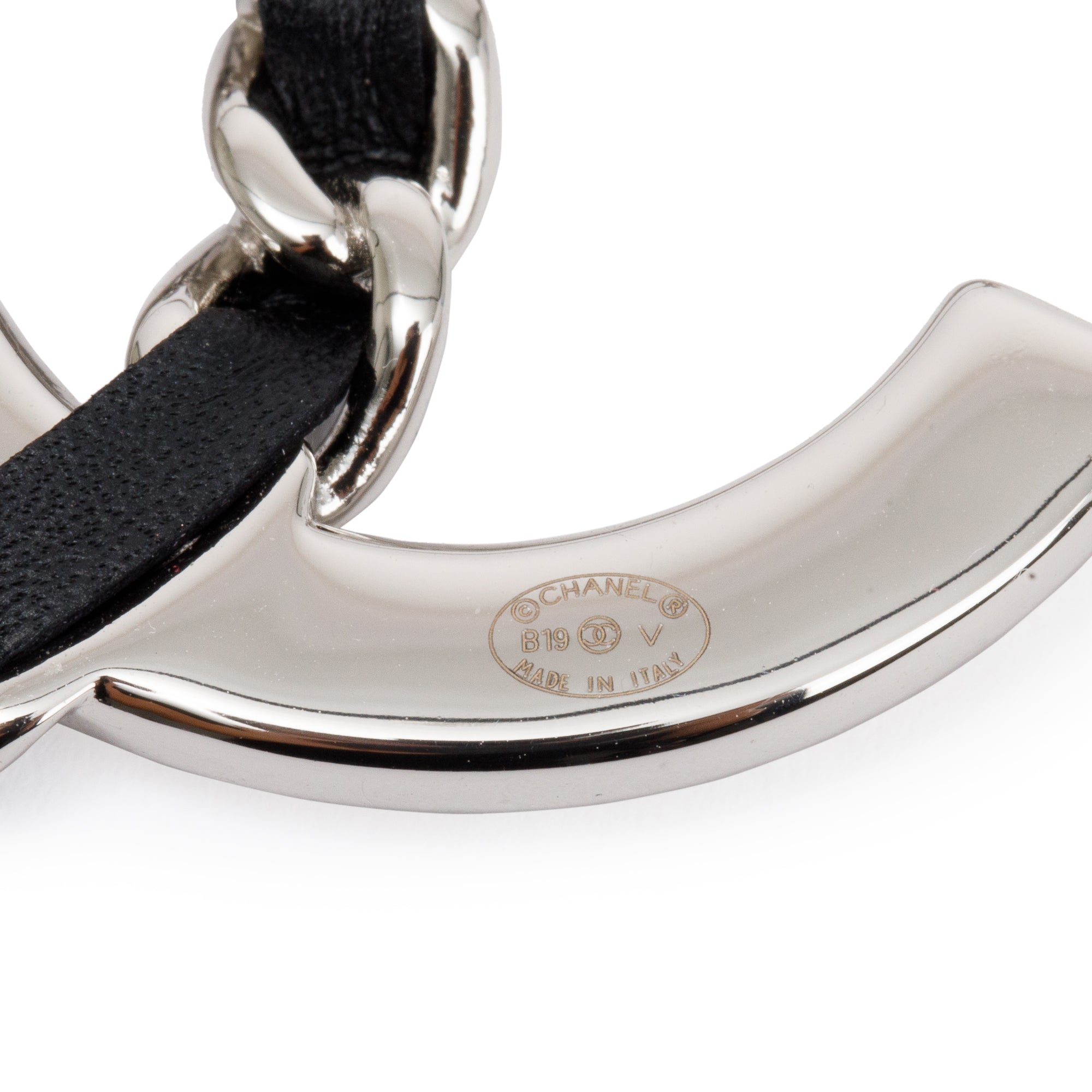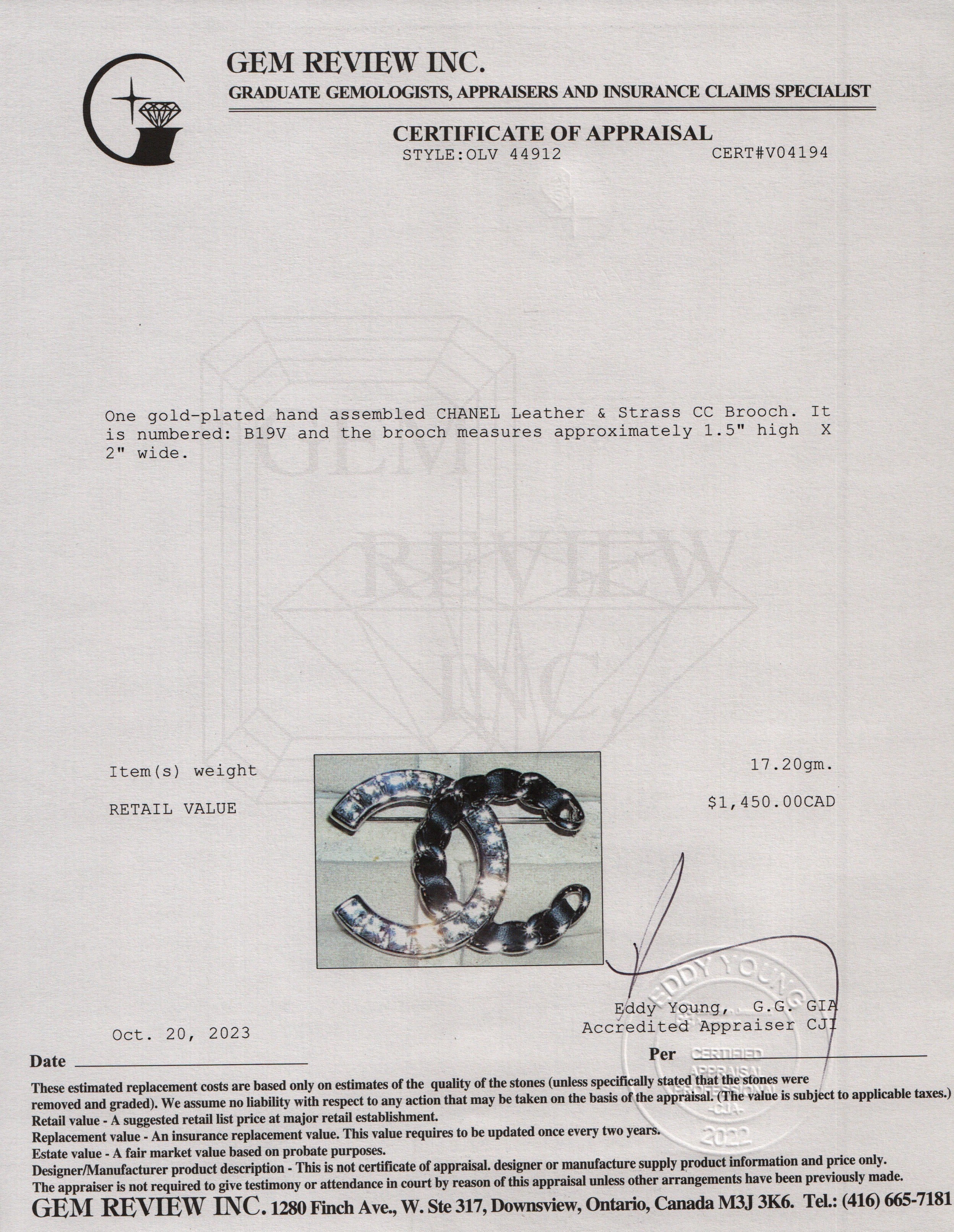 Silver Plated Leather & Strass CC Brooch w/ Box