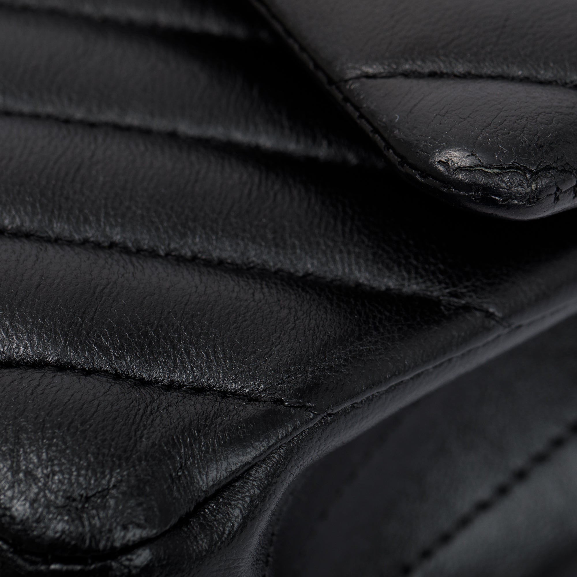 So Black Chevron Calfskin Leather Classic Medium Double Flap Bag