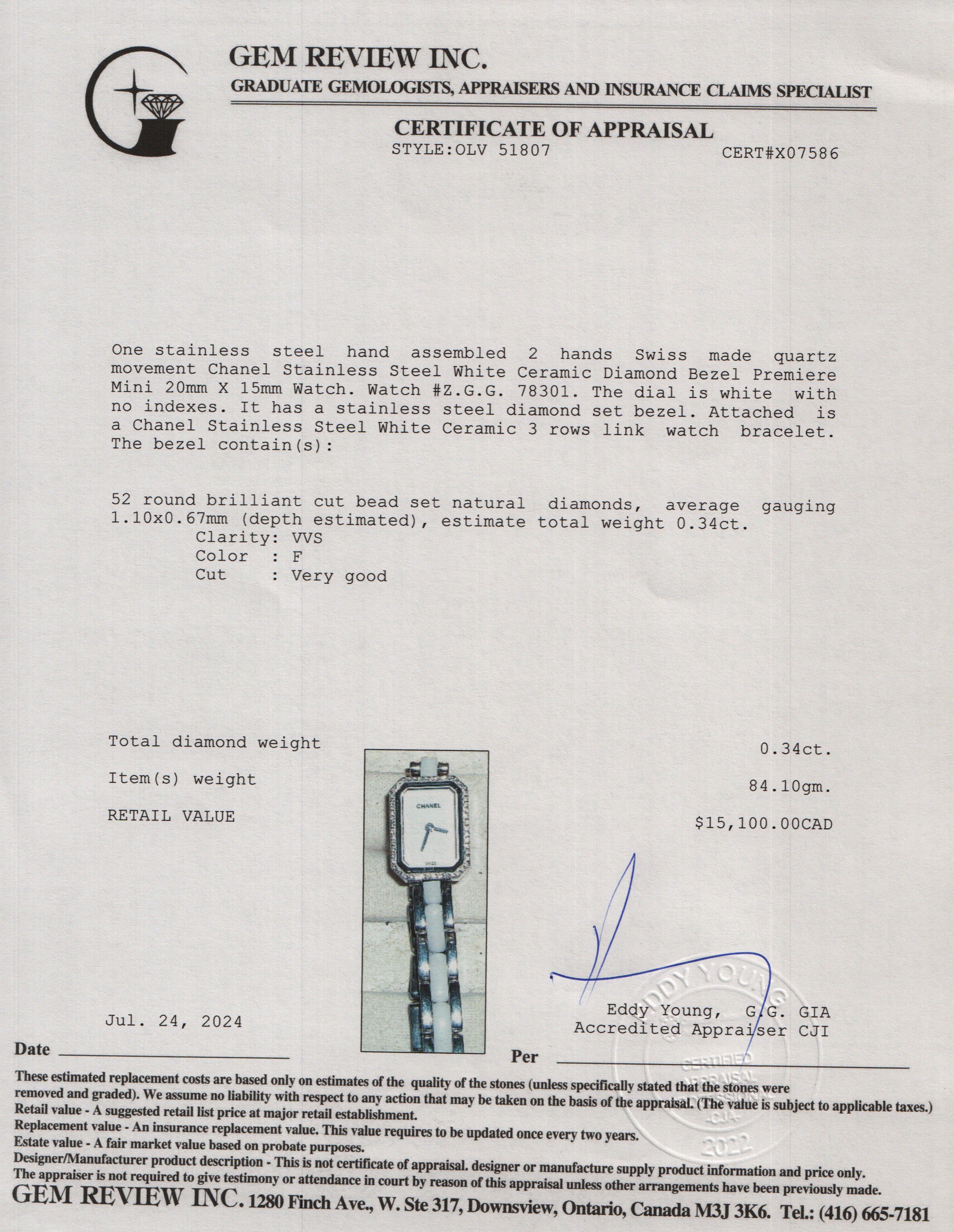 Stainless Steel White Ceramic Diamond Bezel Premiere Mini Watch