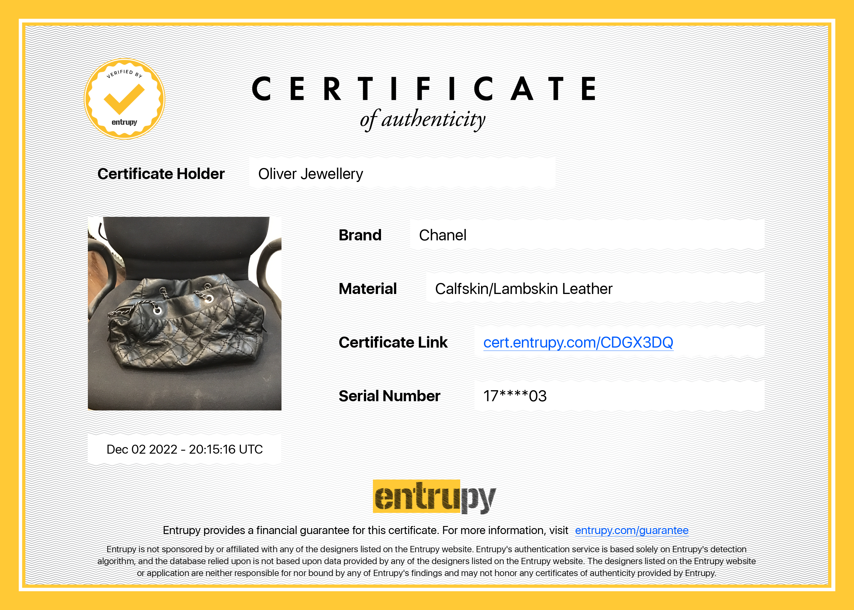 Included Items: Entrupy Certificate of Authenticity #: CDGX3DQ