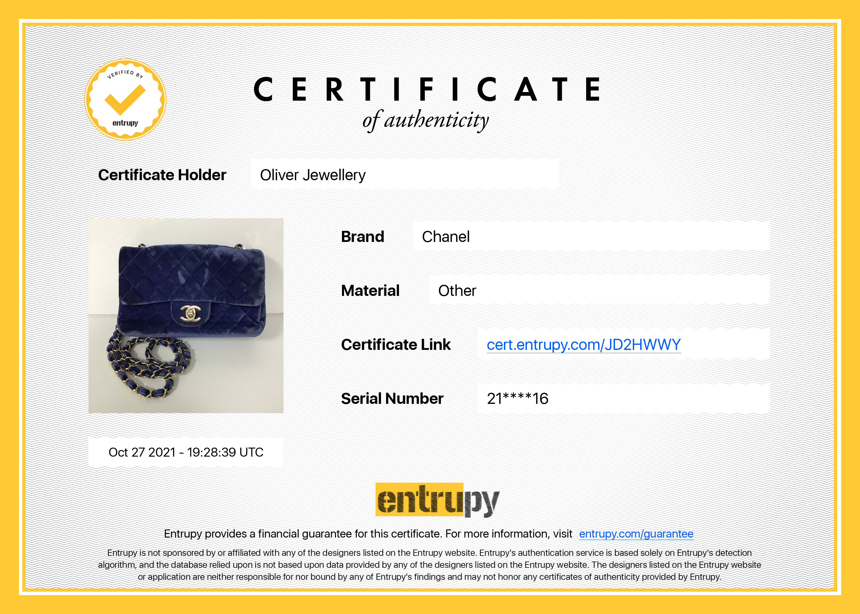 Included Items: Chanel Authenticity Card & Entrupy Certificate of Authenticity #: JD2HWWY