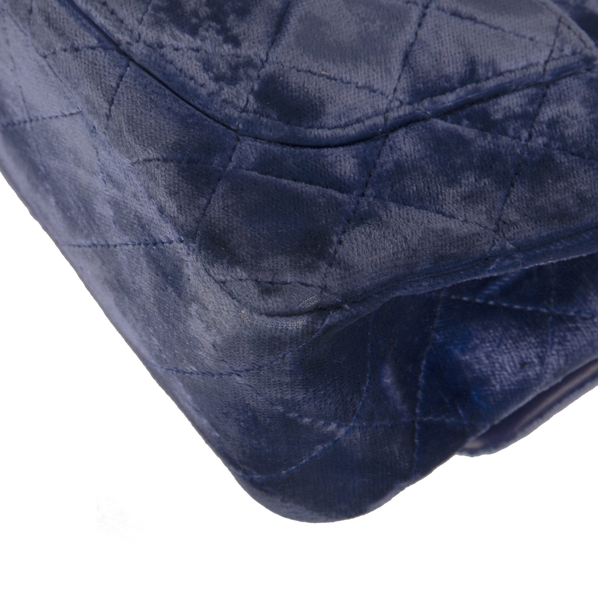Condition: Good; slight surface scratches and tarnishing at hardware, moderate scuffing and wear throughout exterior velvet; slight scuffs at flap underside
