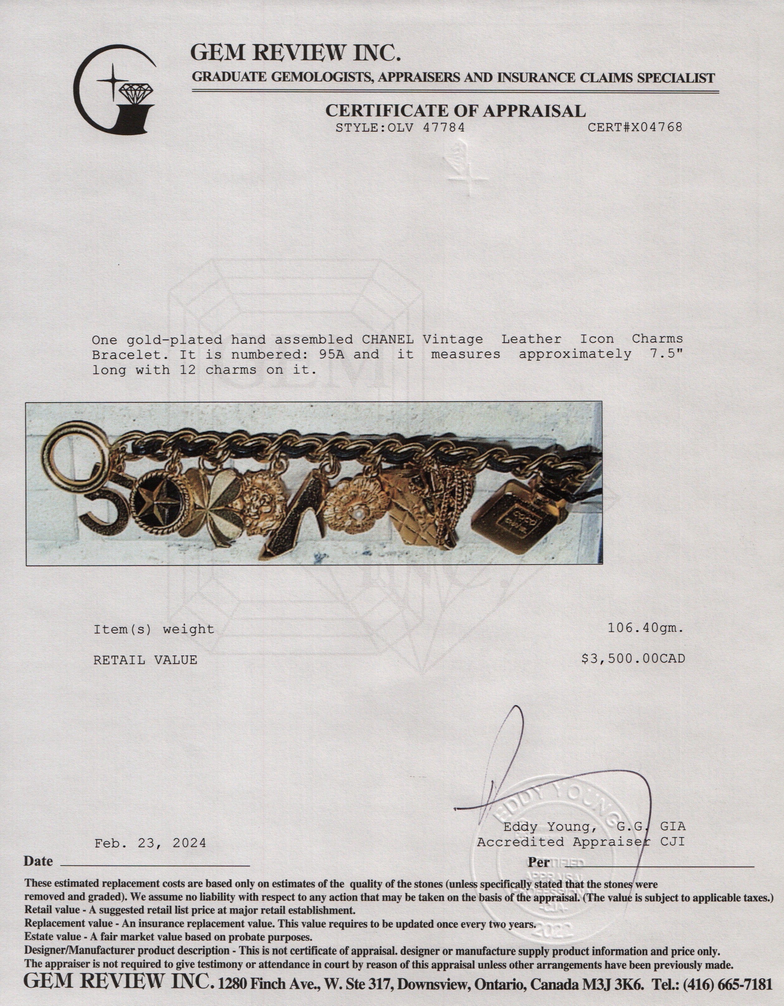 Vintage 1995 Gold Plated & Leather Icon Charms Bracelet w/ Tags