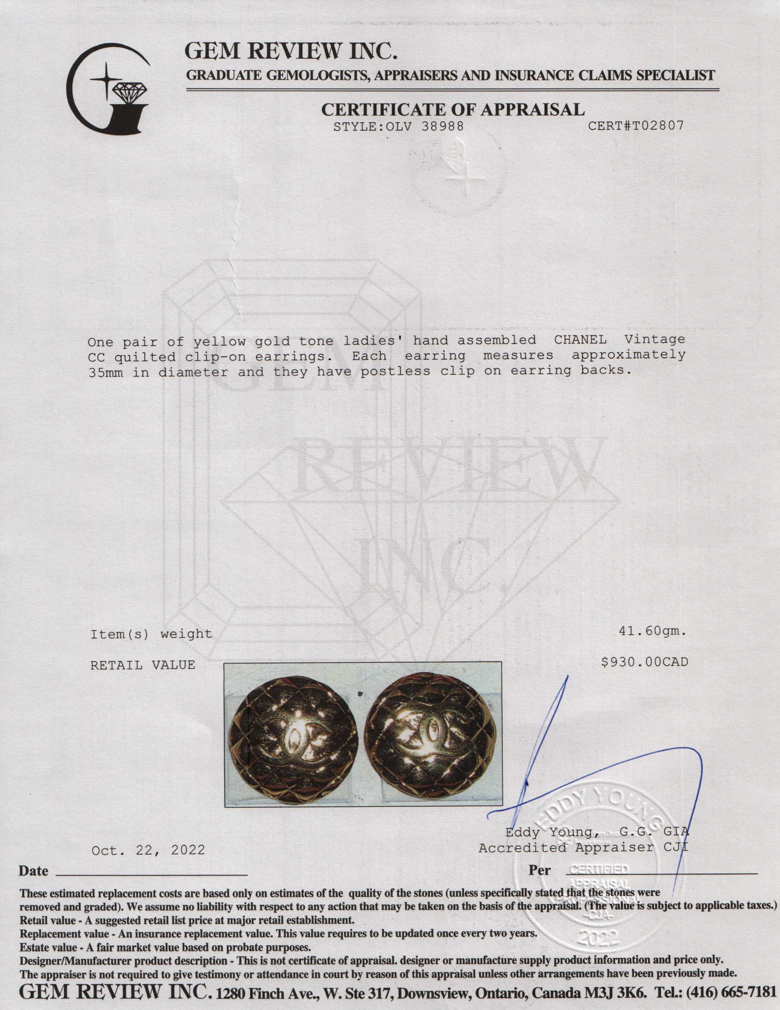 Vintage CC Quilted Clip-On Earrings w/ Box