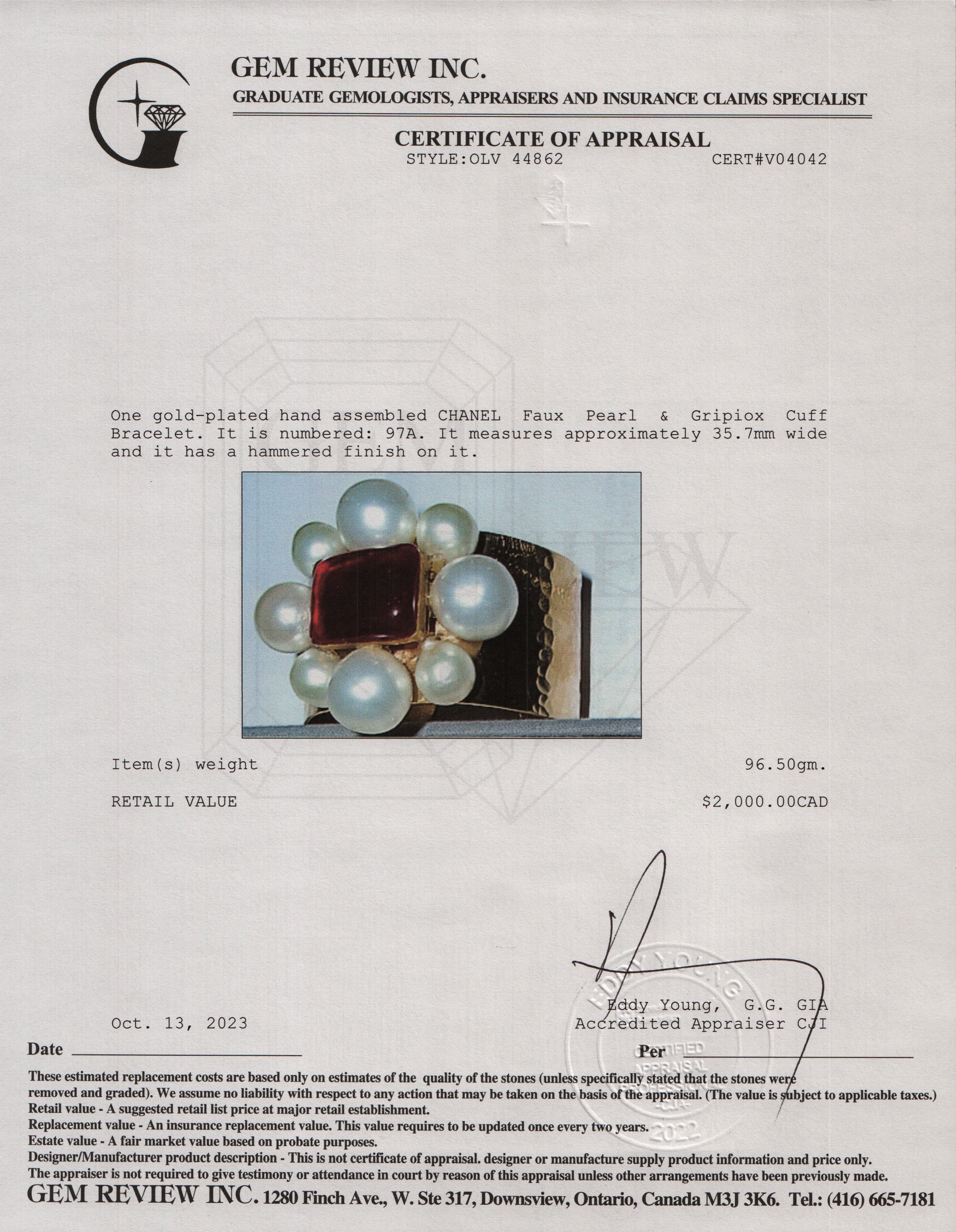 Vintage Gold Plated Faux Pearl & Gripiox Cuff Bracelet