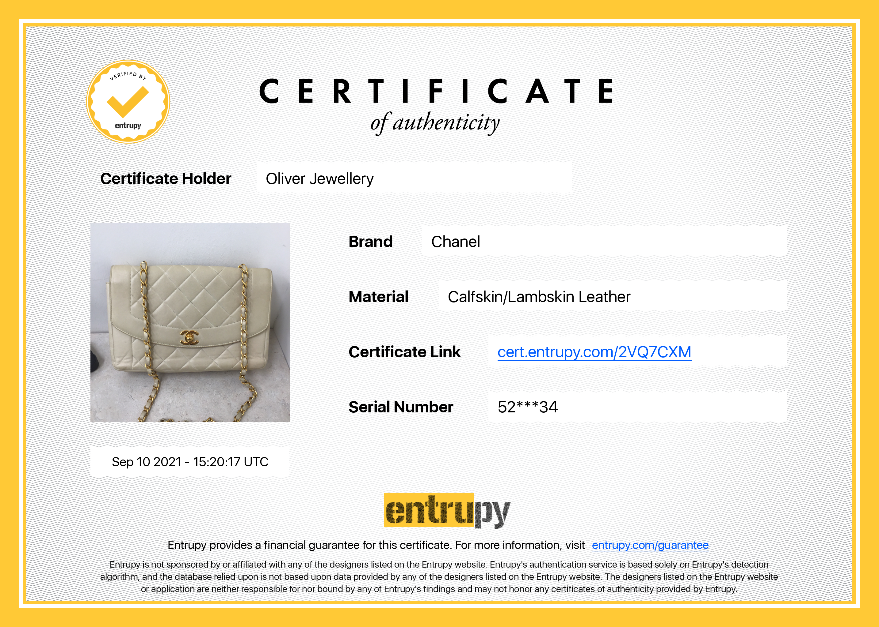 Included Items: Entrupy Certificate of Authenticity #: 2VQ7CXM