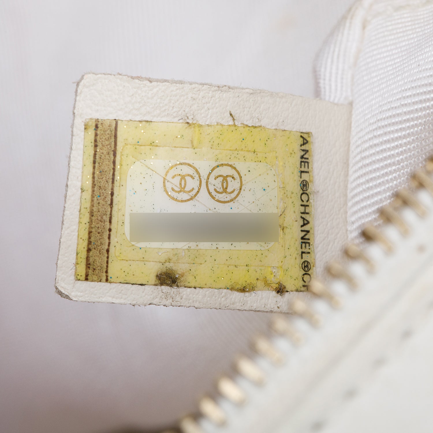 White Calfskin Leather Stitched Enamel CC Camera Bag