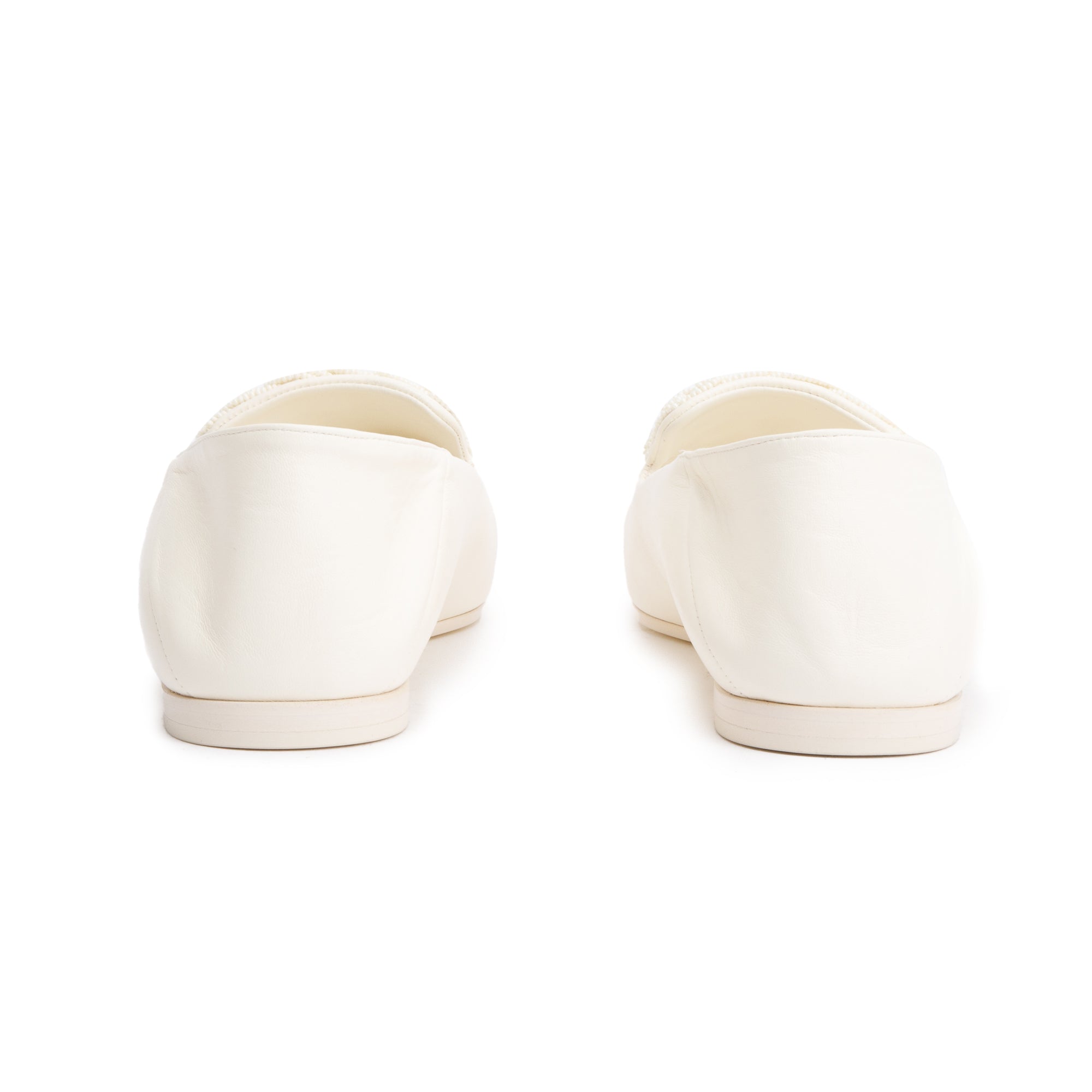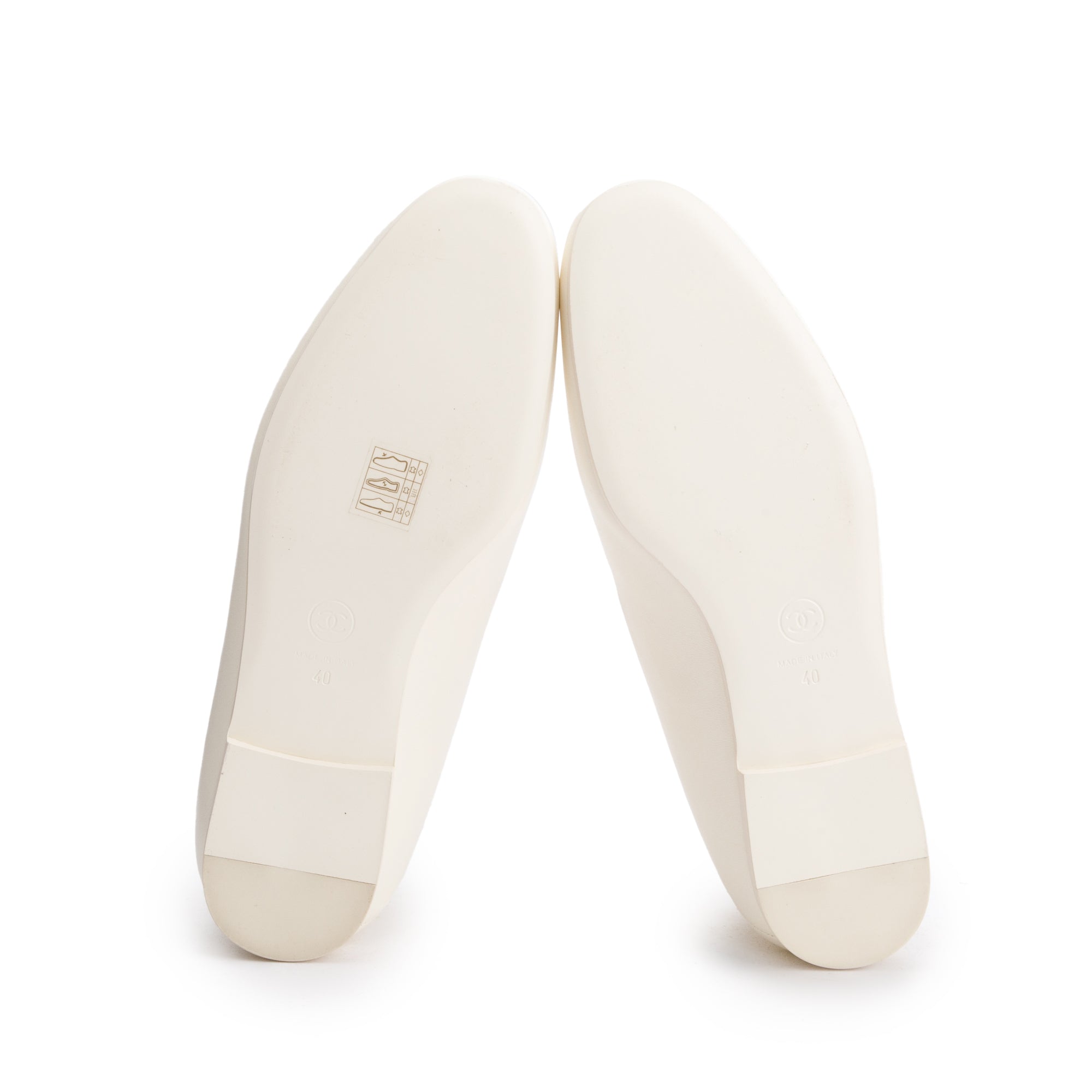 White Lambskin Leather CC Logo Beaded Loafer, Size 40 w/ Box
