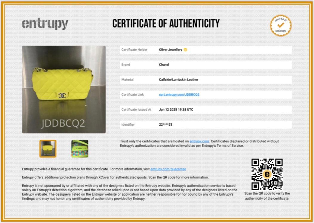 Box, Dust Bag, Authenticity Card, Booklet, Entrupy Certificate of Authenticity