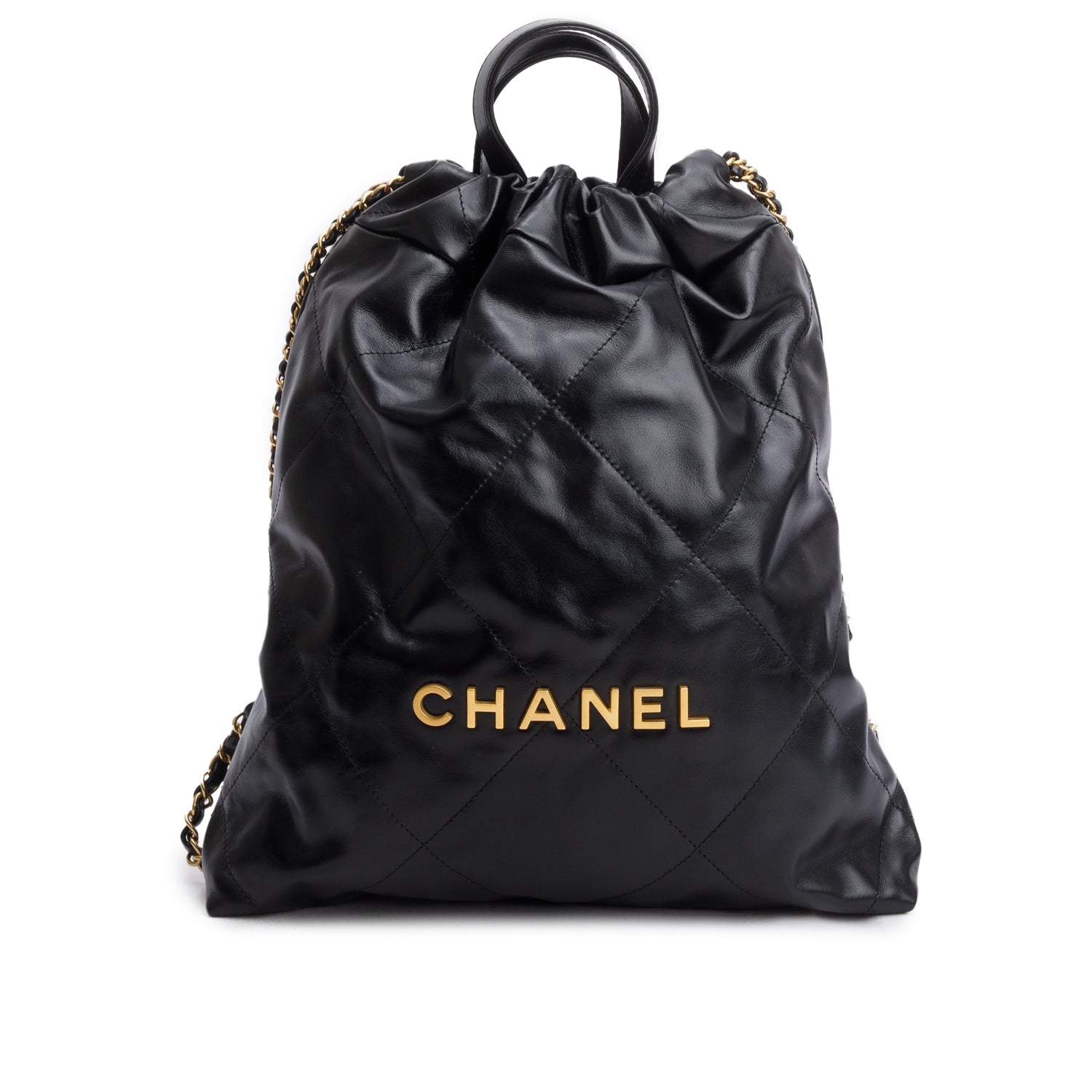 Channel Black Shiny Calfskin Leather 22 Backpack w/ Box