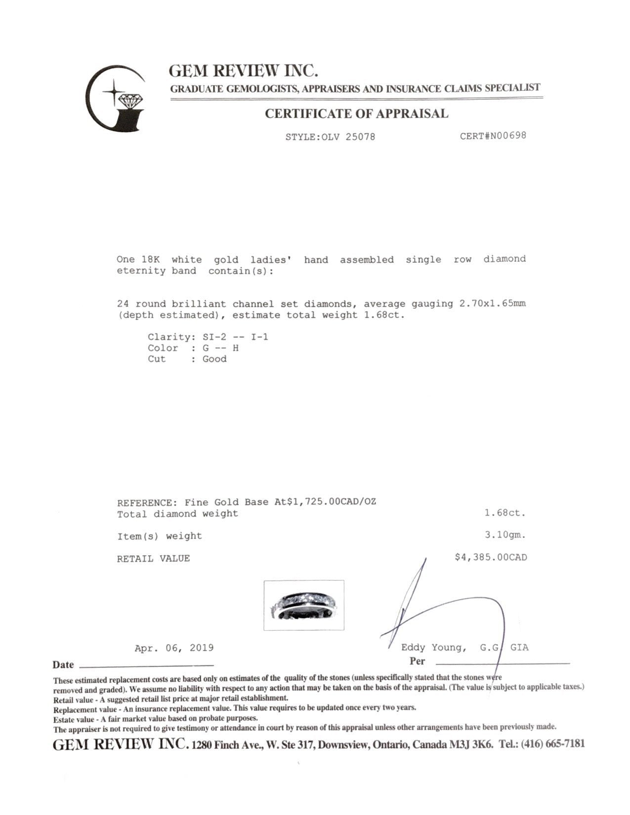 - 24 Round Brilliant Cut Channel-Set Diamonds Totalling Approximately 1.68 ct. of SI2-I1 Clarity, G-H Colour, Good Cut
