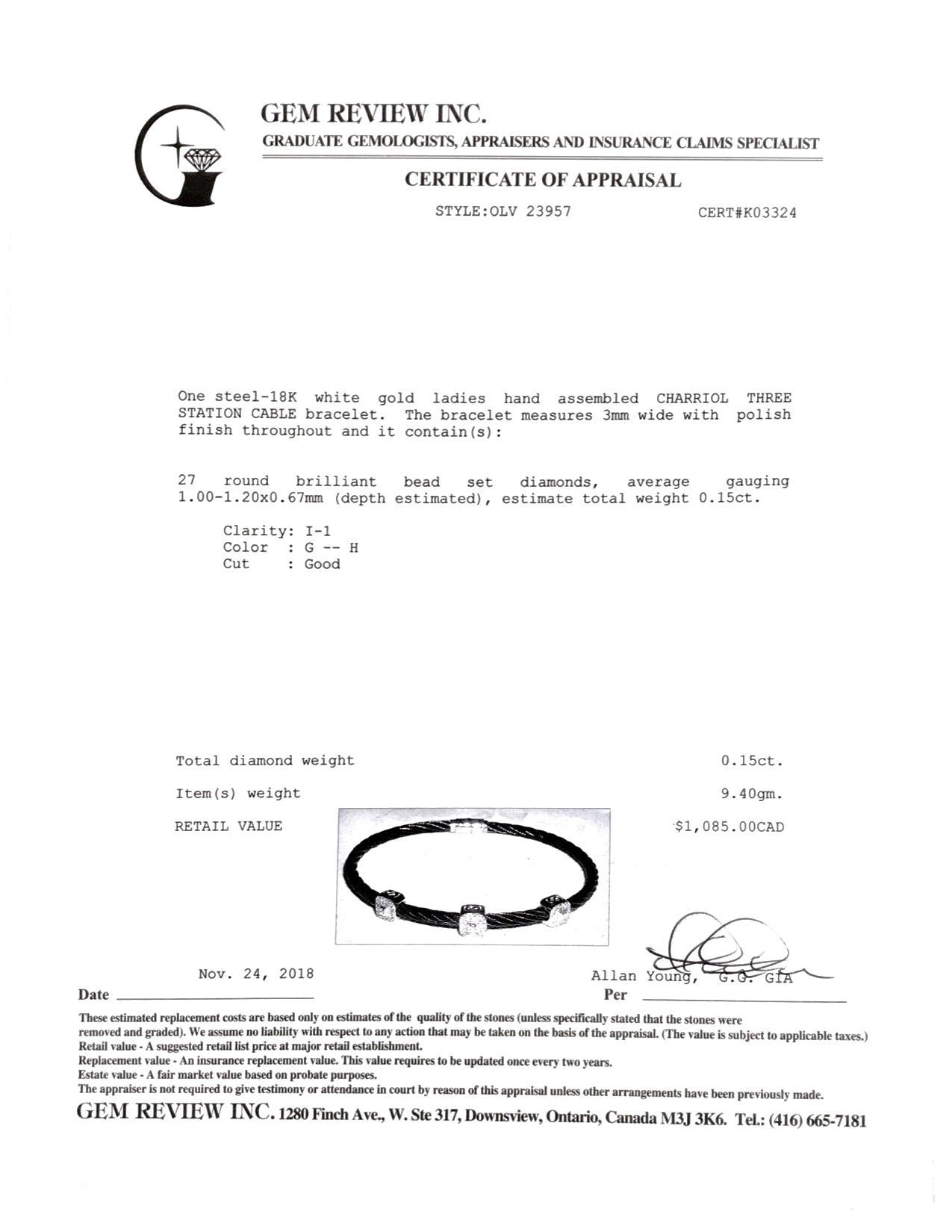 Charriol Diamond Three Station Cable Bracelet