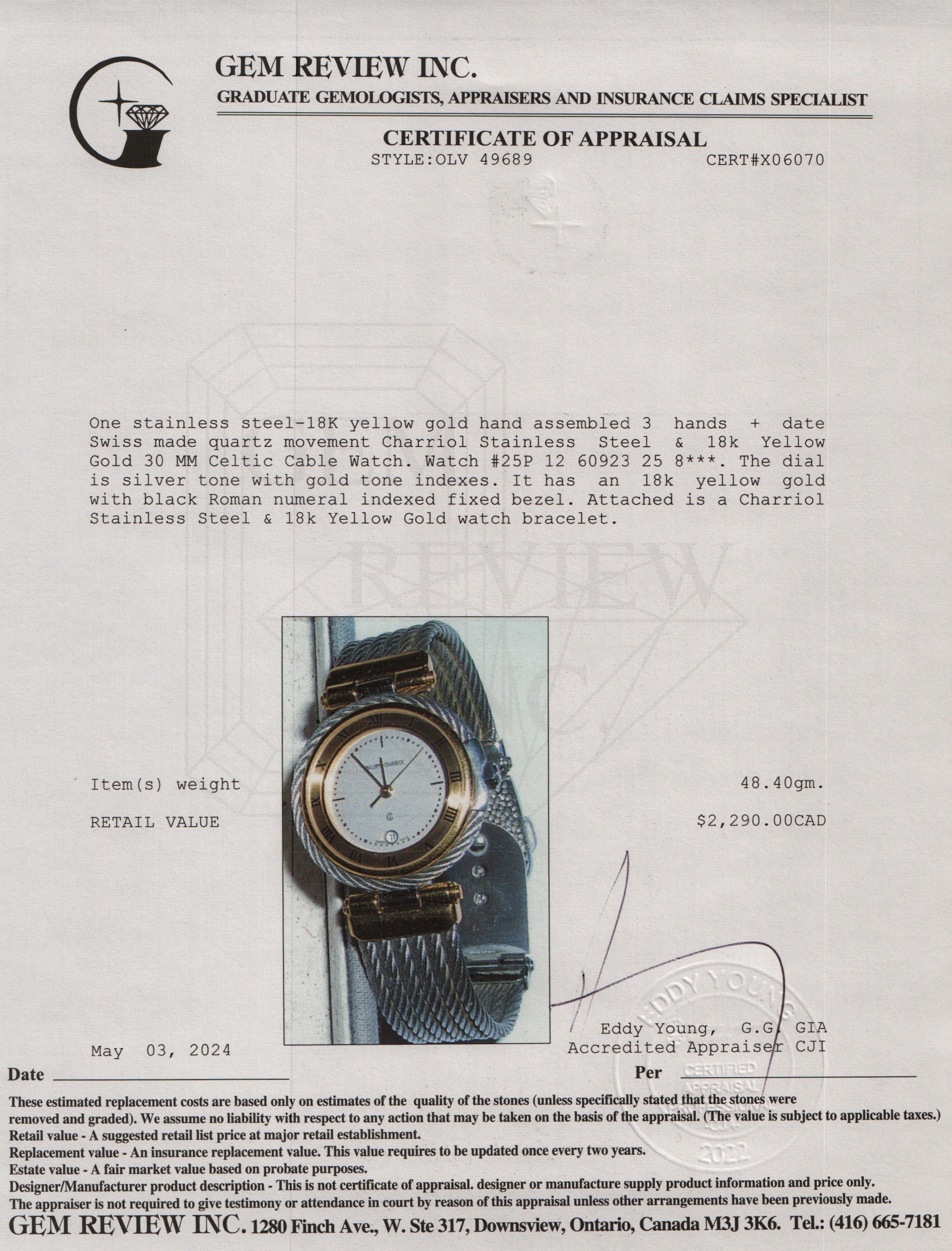 Stainless Steel & 18k Yellow Gold 30 MM Celtic Cable Watch w/ Case & Papers