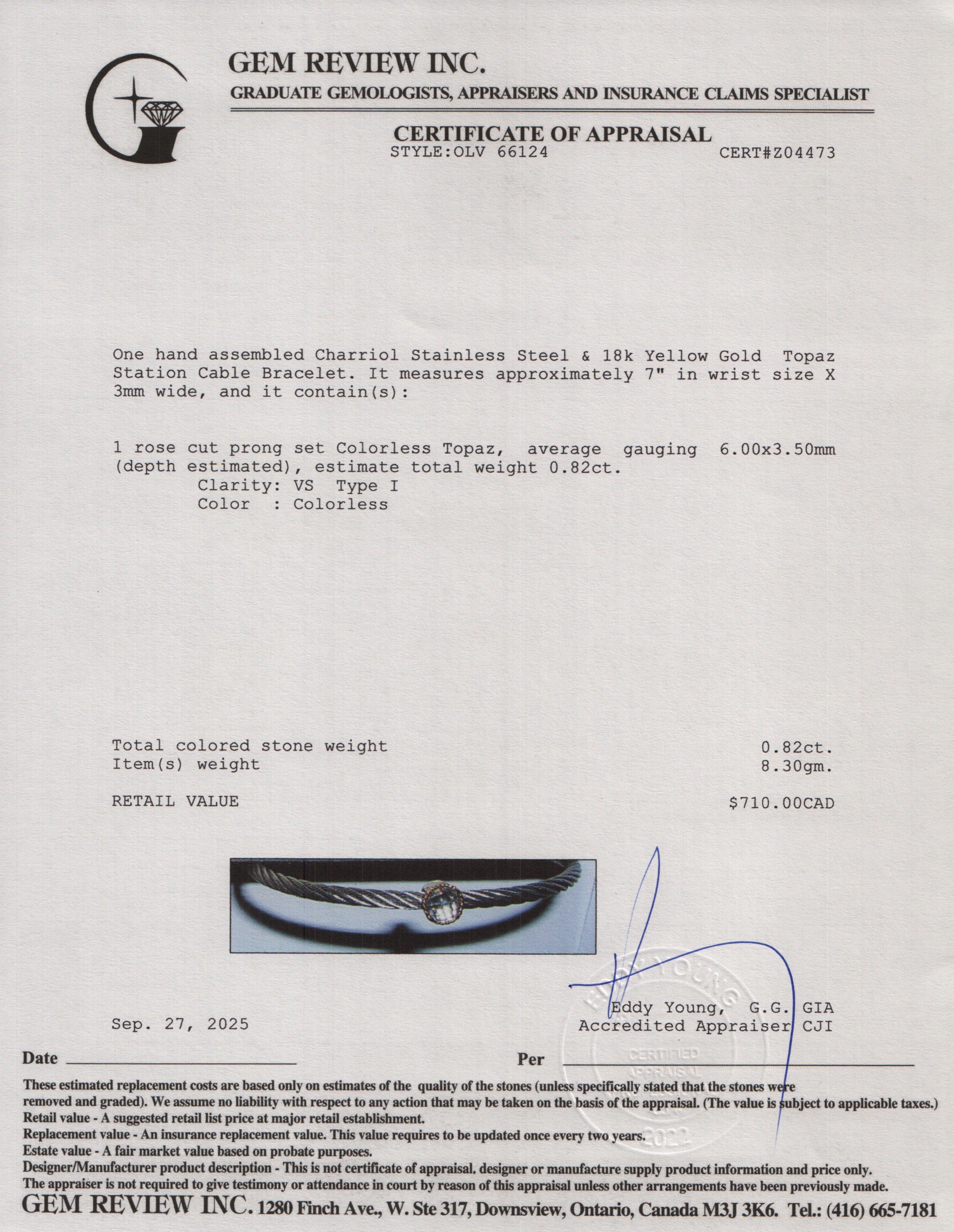 Stainless Steel & 18k Yellow Gold Topaz Station Cable Bracelet