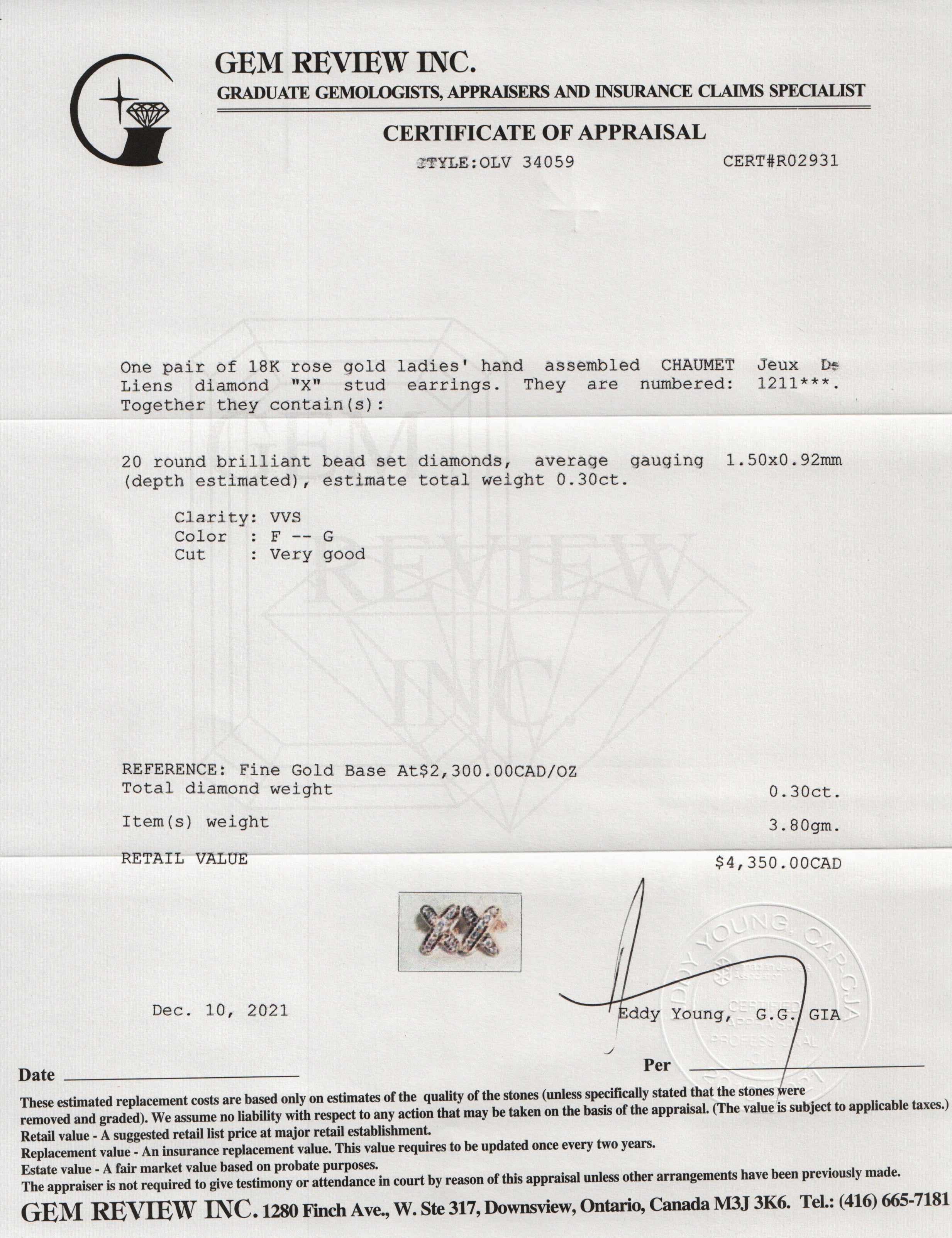 Chaumet 18k Rose Gold Jeux de Liens Diamond Stud Earrings