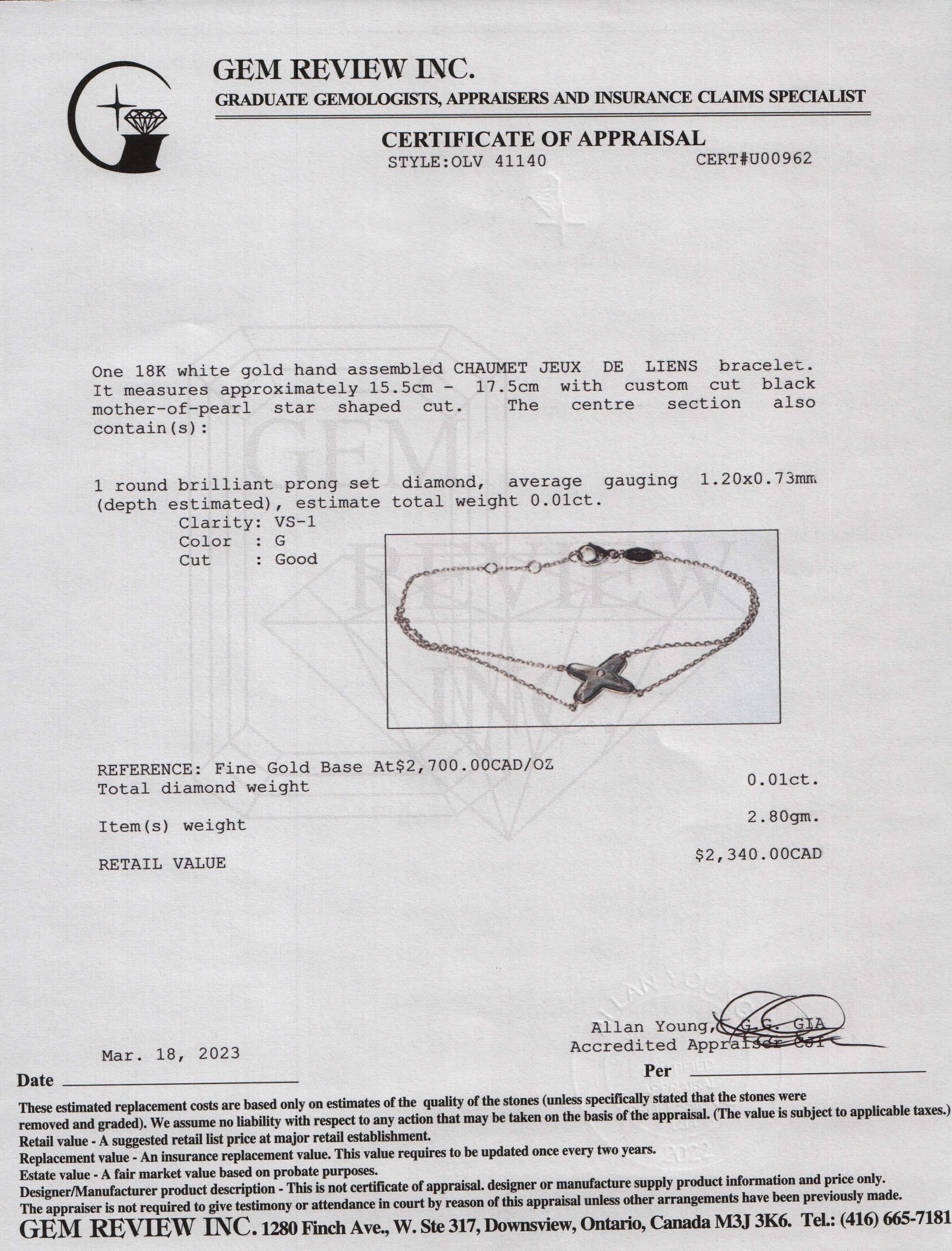 Chaumet 18k White Gold Mother of Pearl & Diamond Jeux de Liens Bracelet