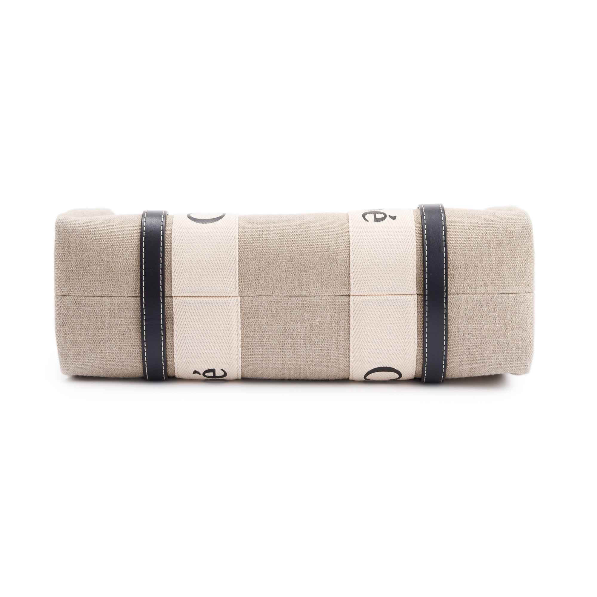 Beige/Blue Cotton Calfskin Canvas Medium Woody Shopping Tote