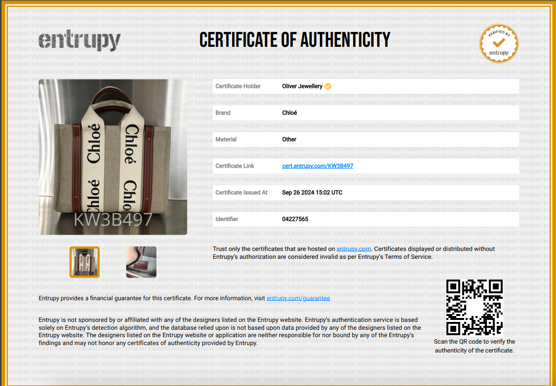 Dust Bag, Detachable Strap, Entrupy Certificate of Authenticity