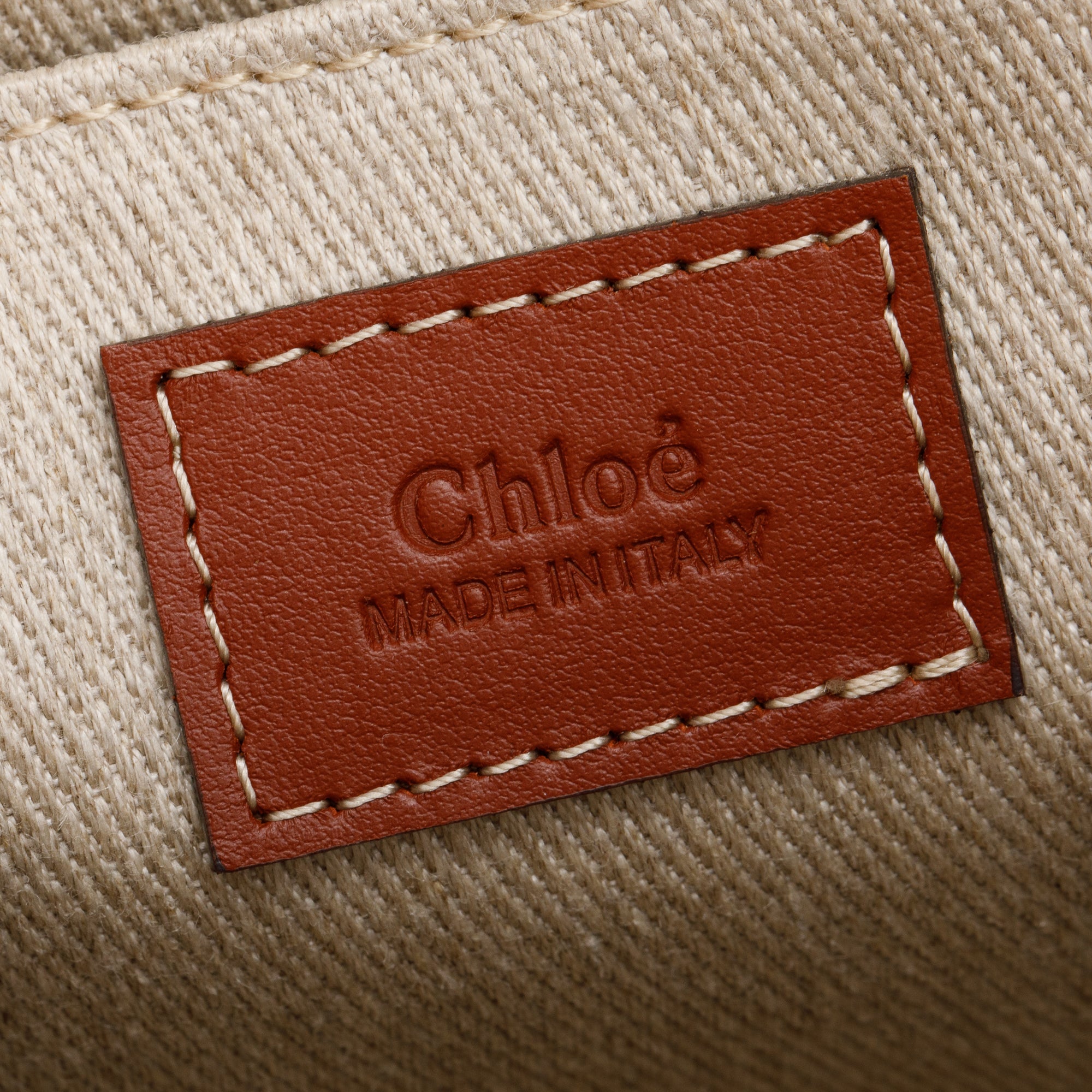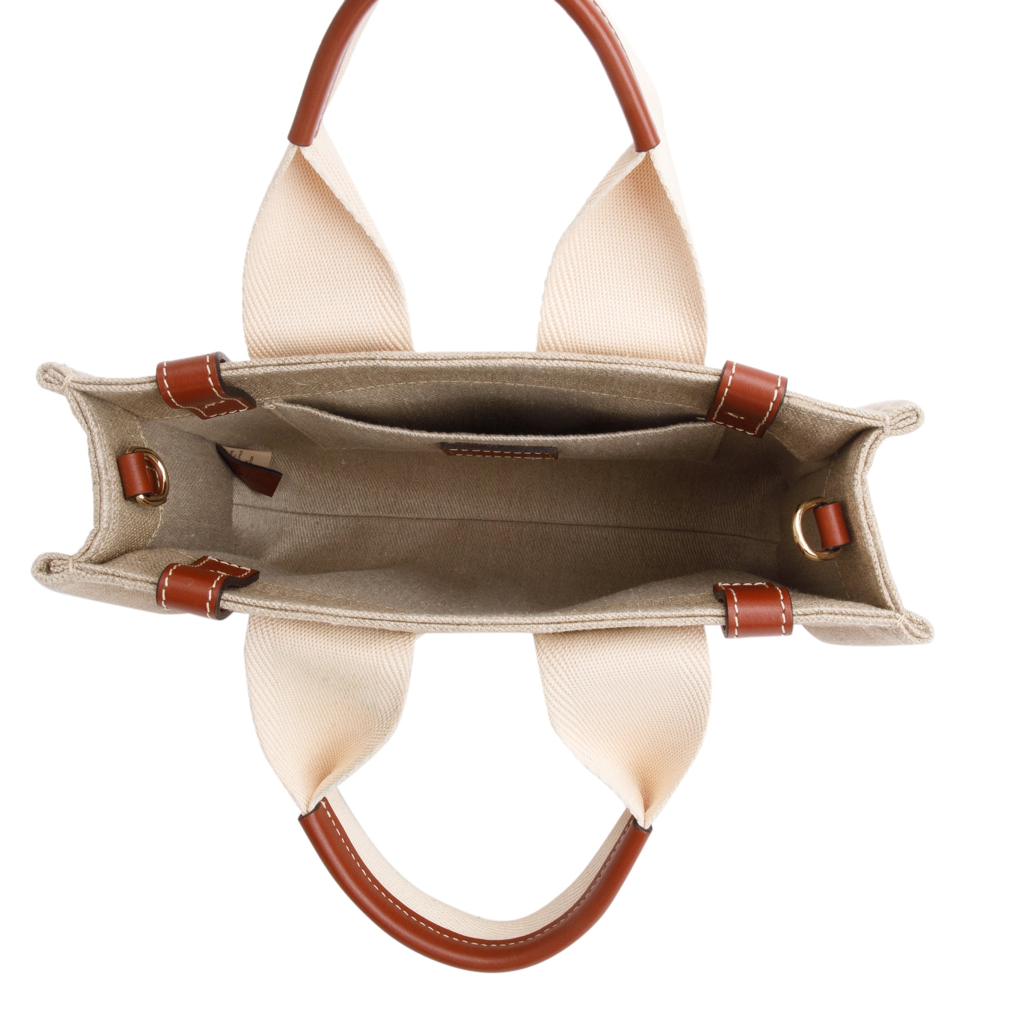 Brown/White Linen Calfskin Small Woody Ribbon Tote w/ Strap