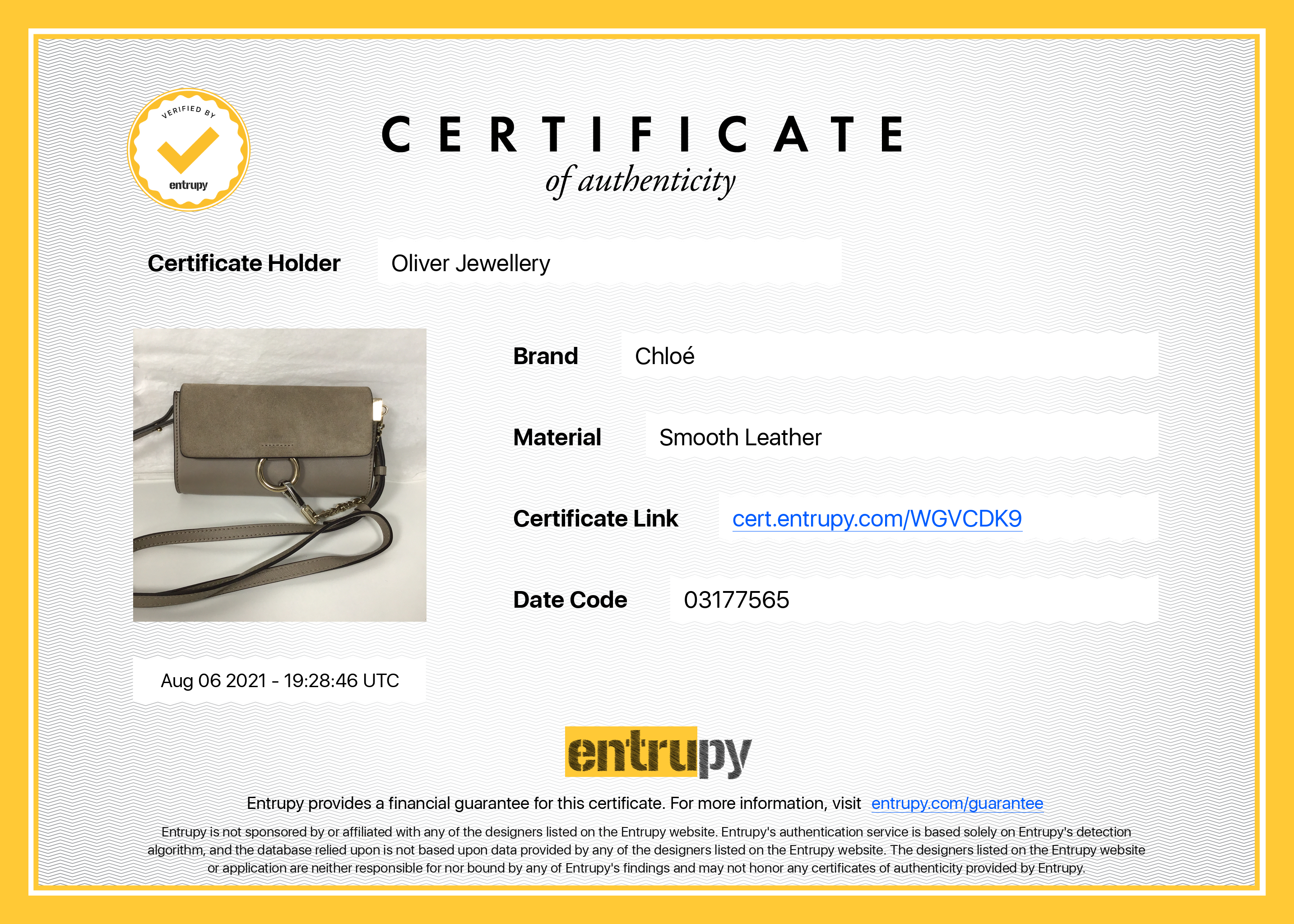 Included Items: Entrupy Certificate of Authenticity #: WGVCDK9
