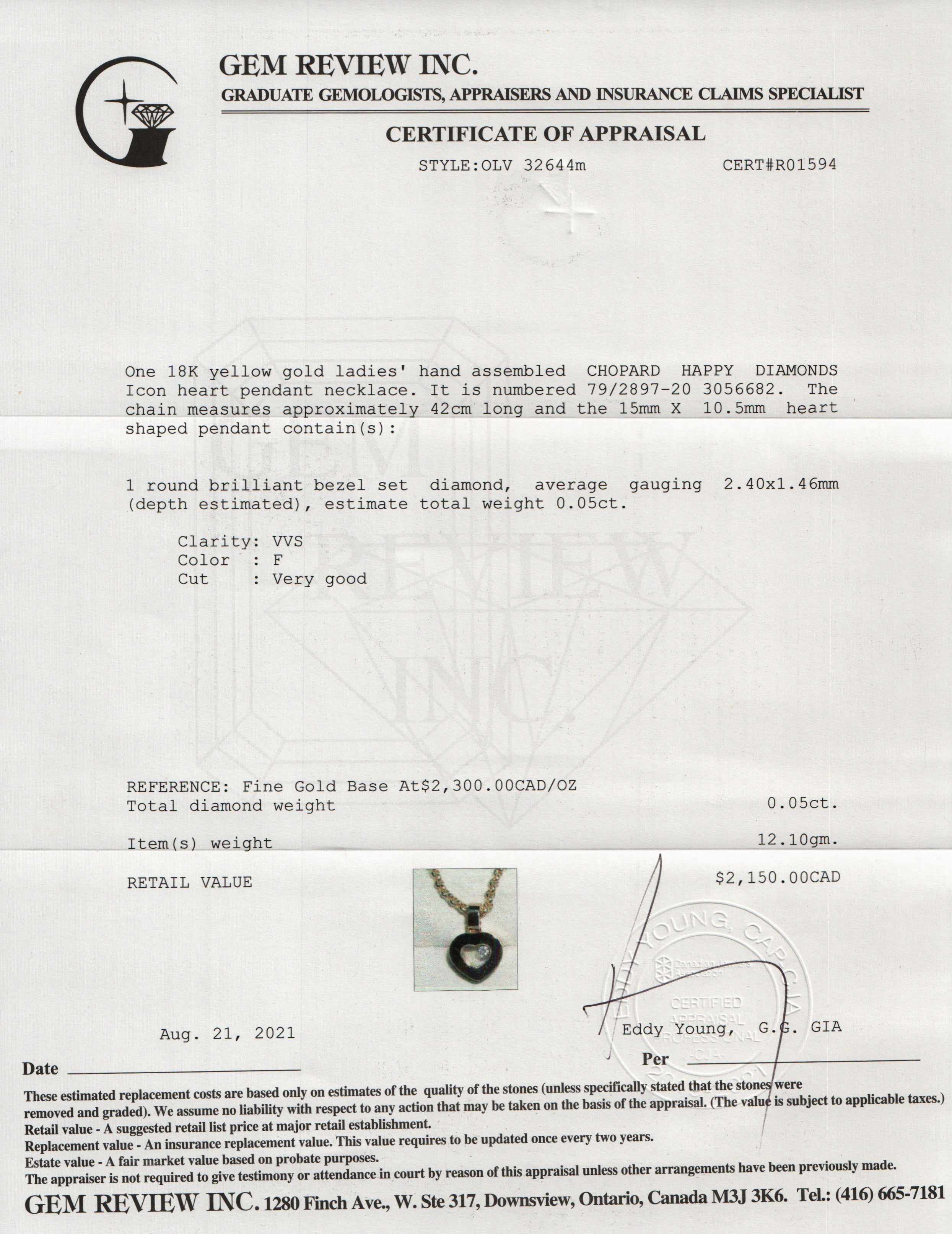 Included Items: Original Chopard Certificate & Gem Review Appraisal