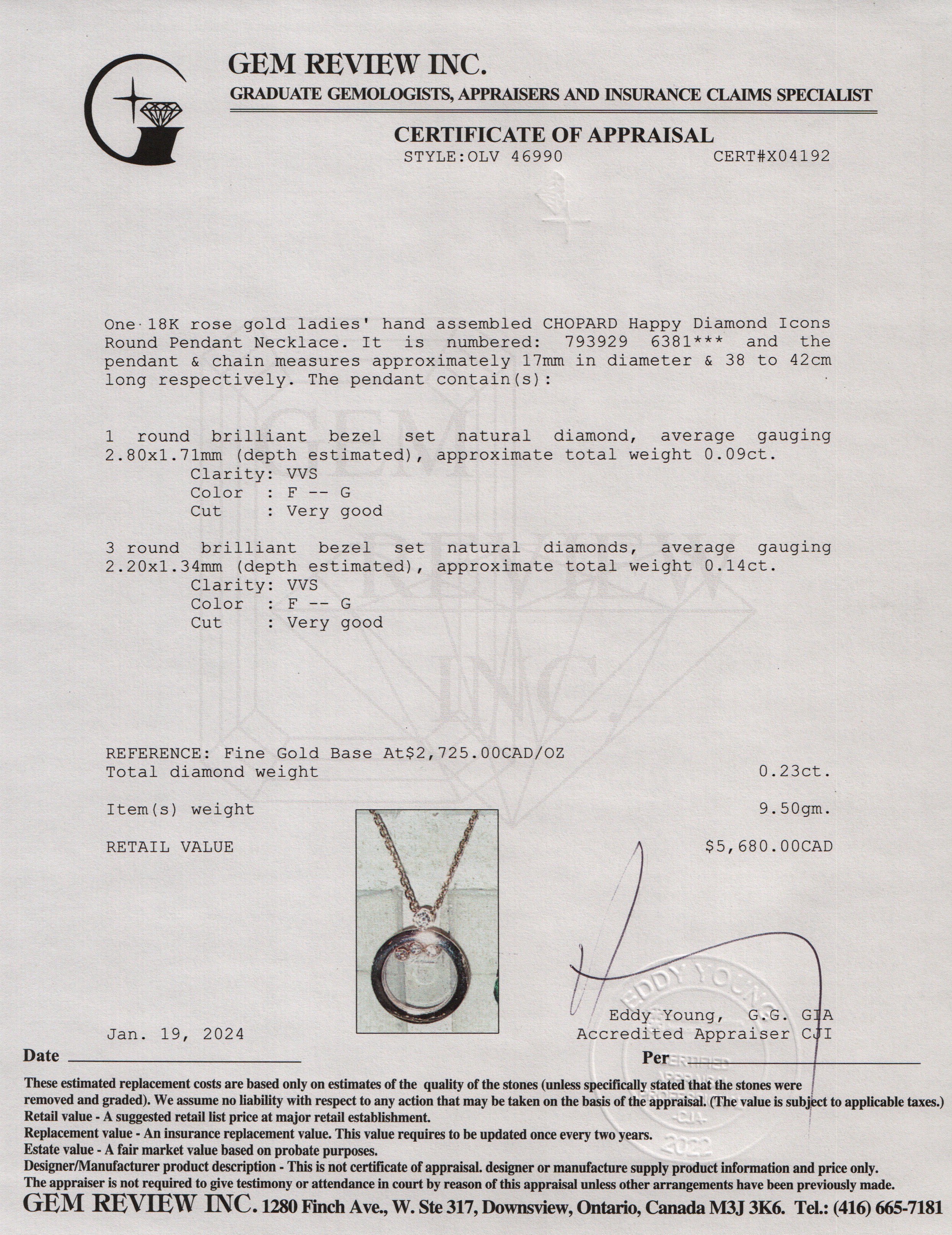 18k Rose Gold Happy Diamond Icons Round Pendant Necklace