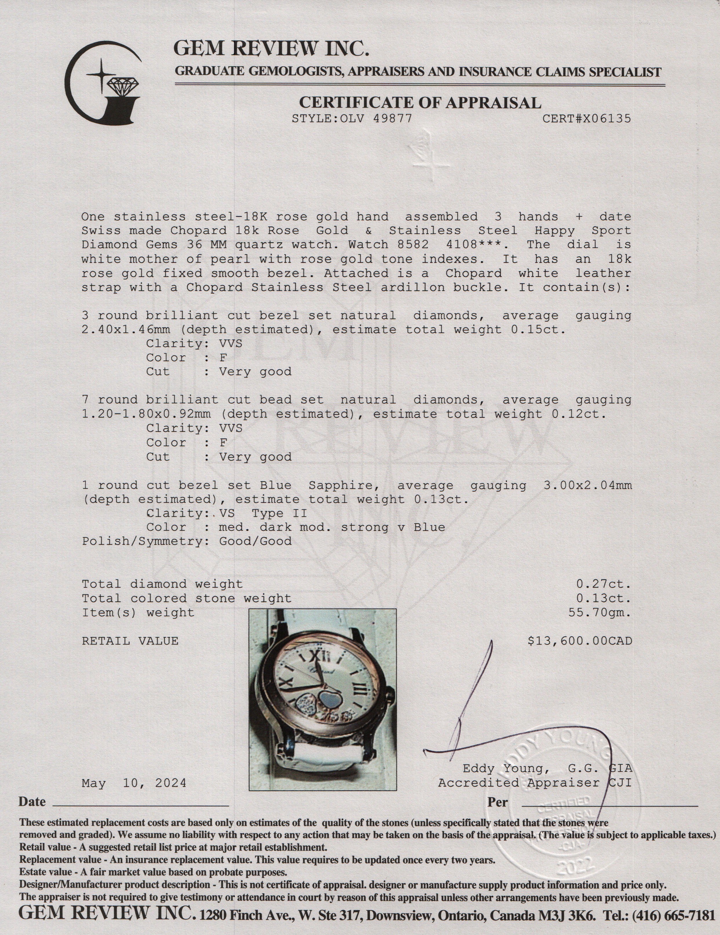 18k Rose Gold & Stainless Steel Happy Sport Diamond Gems 36 MM Watch