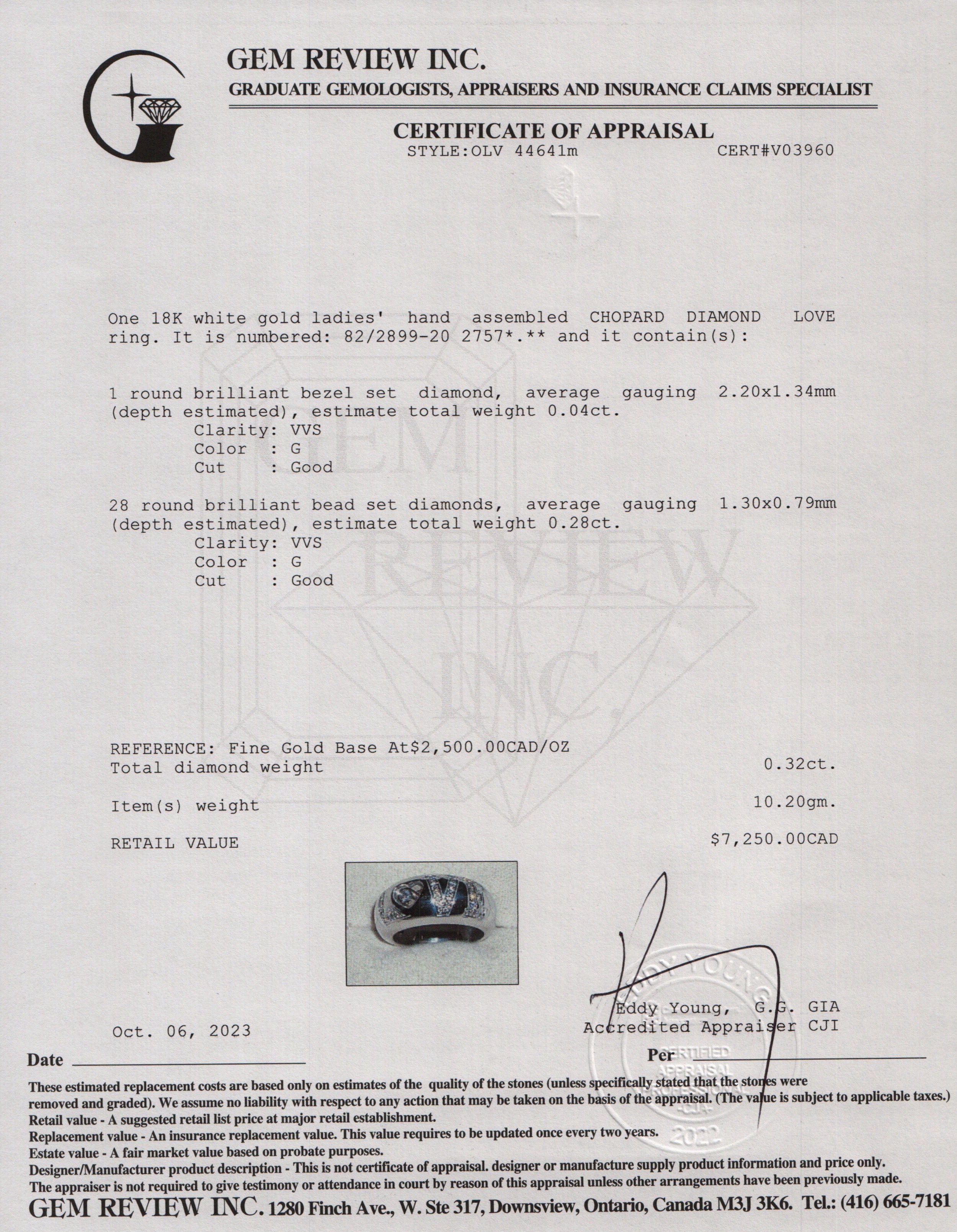 18k White Gold Happy Diamond Love Ring, Size 5.25