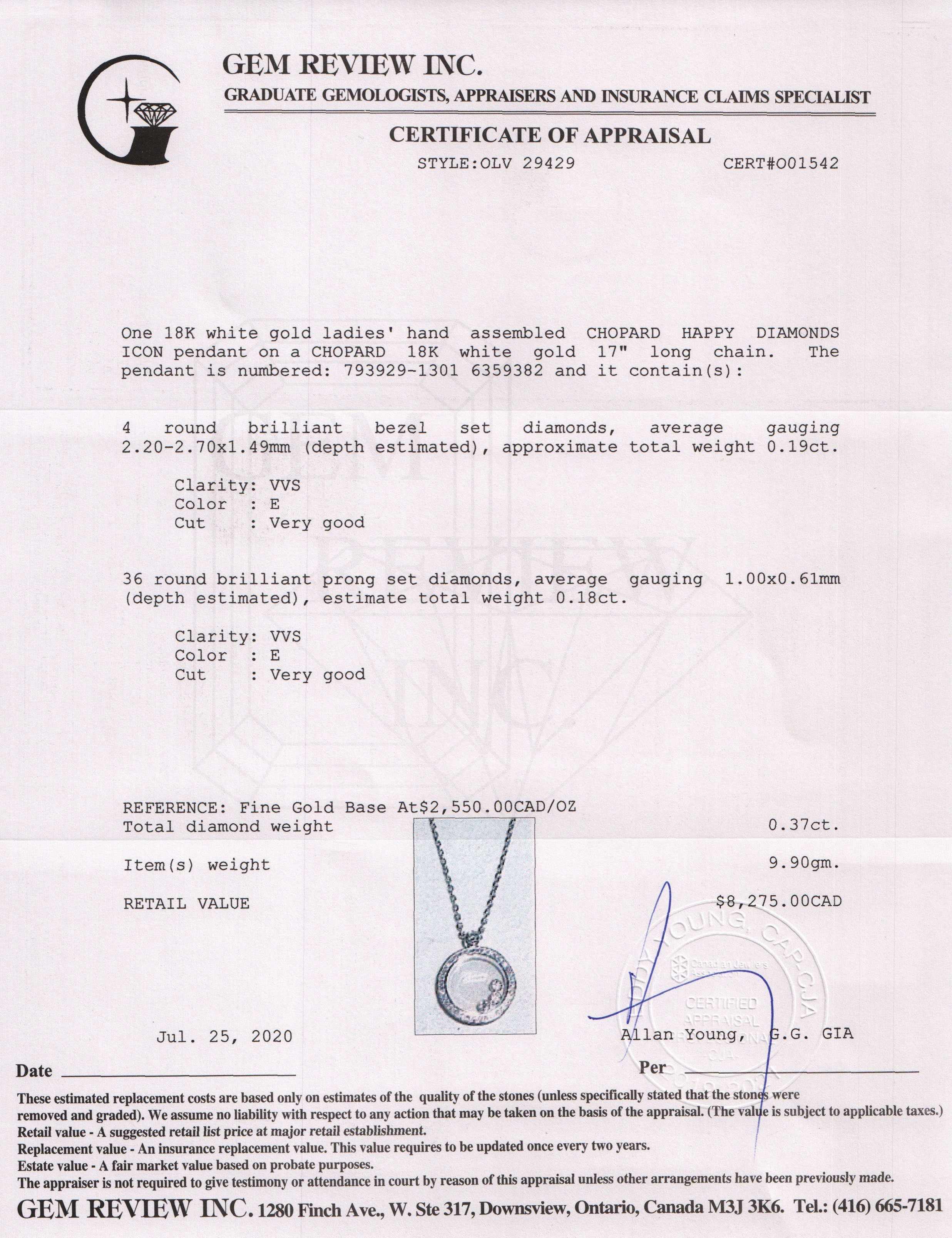 Original Chopard Box, Booklet & Gem Review Appraisal