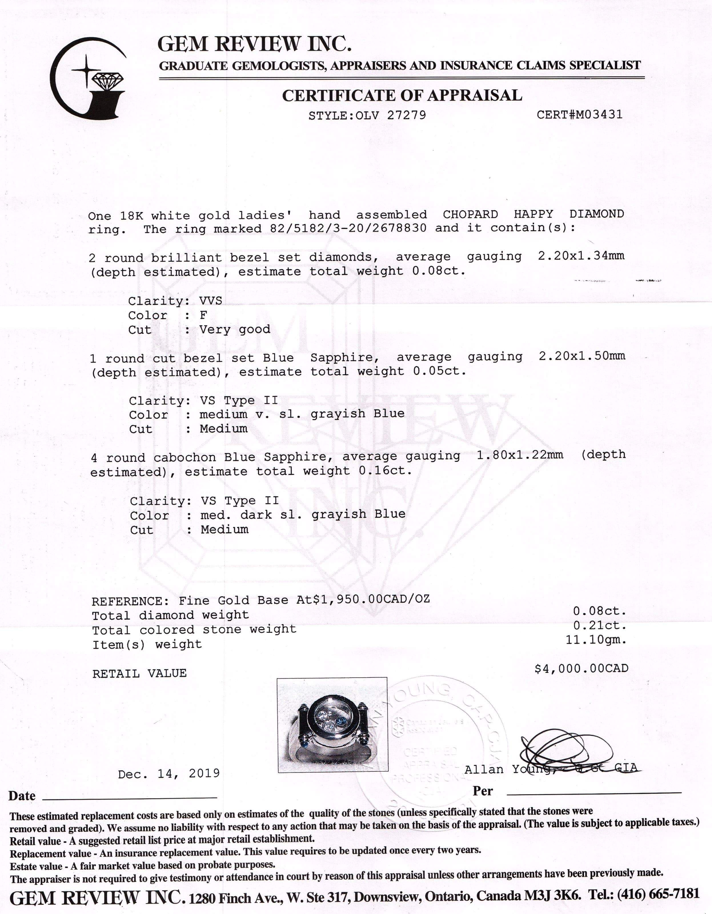 Chopard 18k White Gold Sapphire & Diamond Happy Diamond Ring