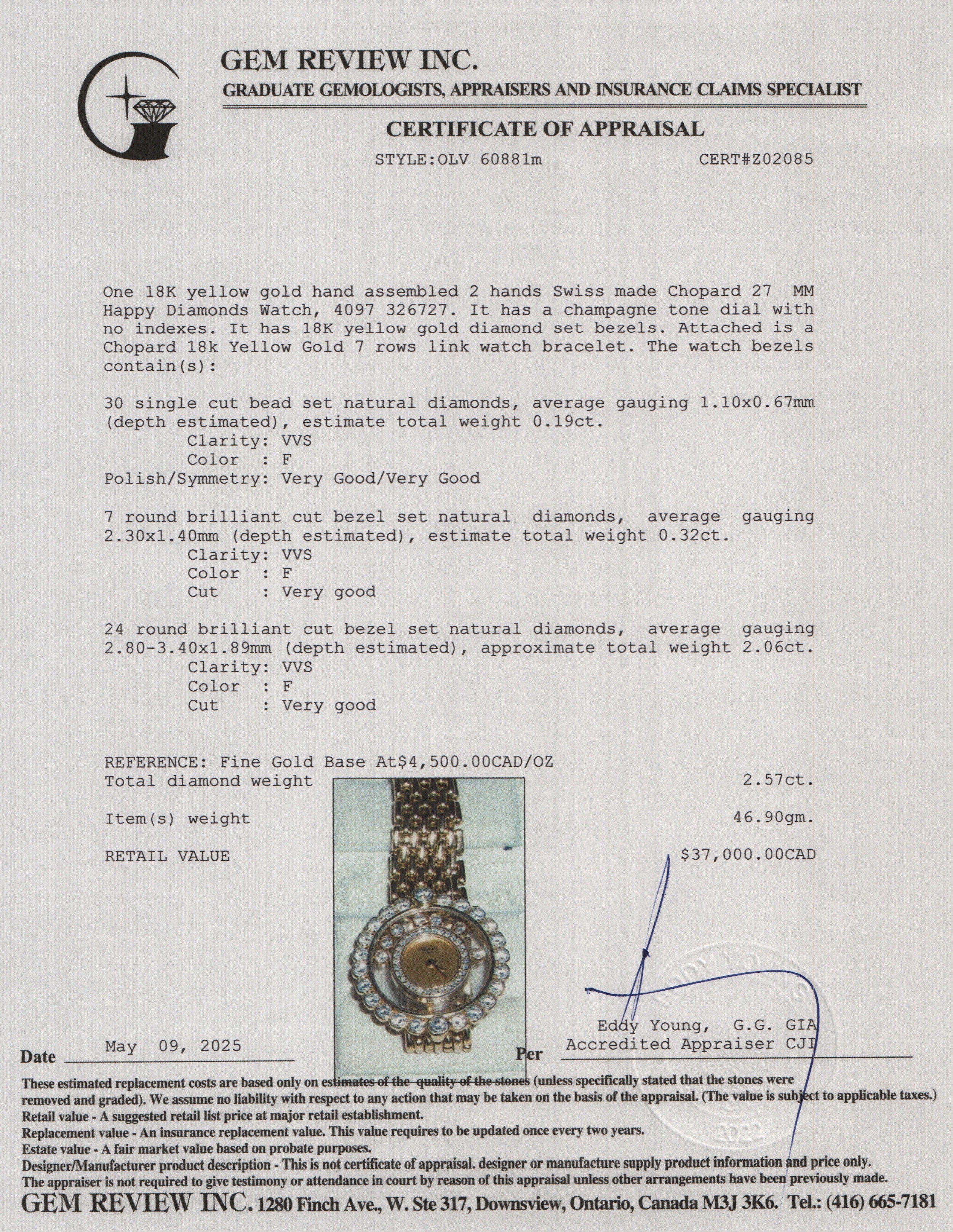 18k Yellow Gold Diamond 27 MM Happy Diamonds Watch 4097