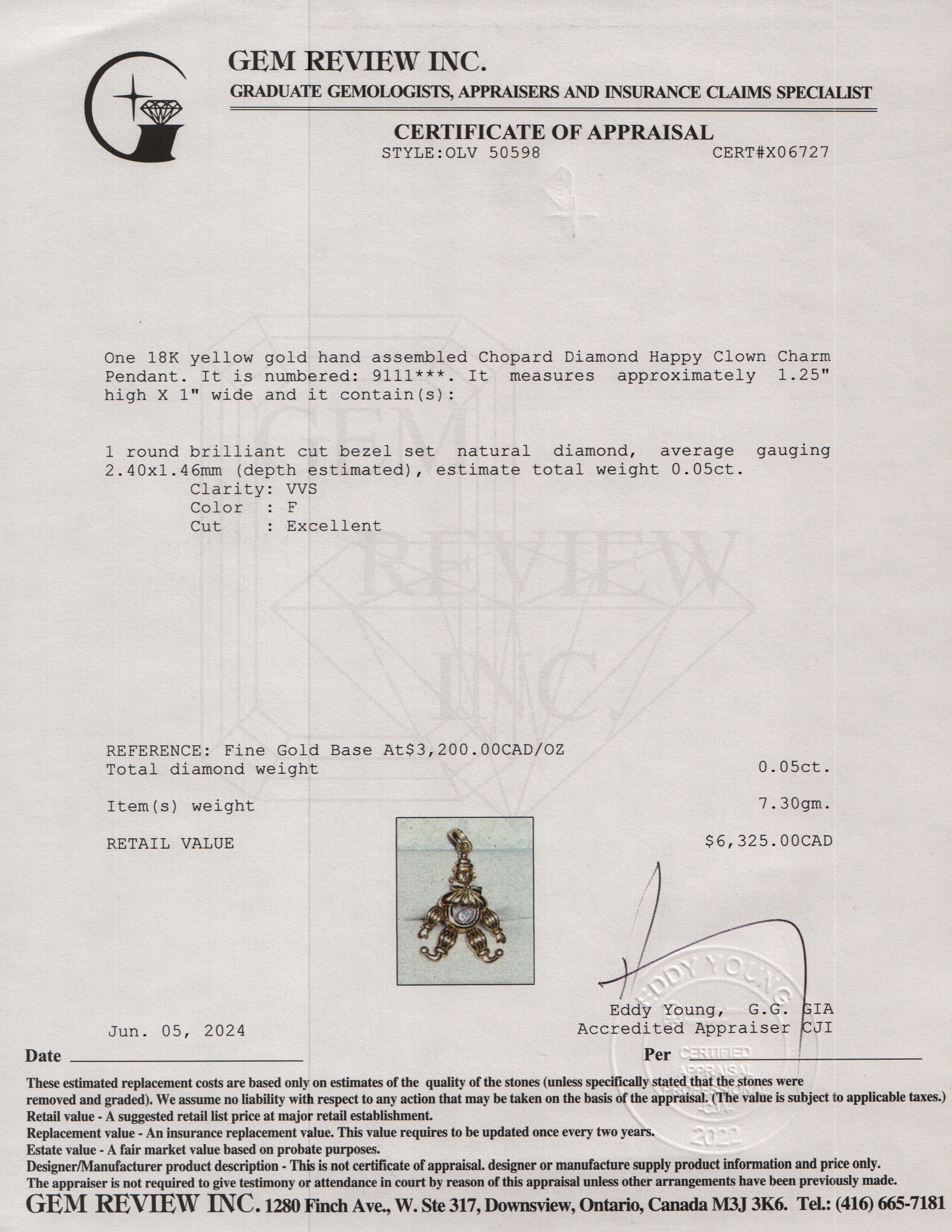 18k Yellow Gold Diamond Happy Clown Charm Pendant