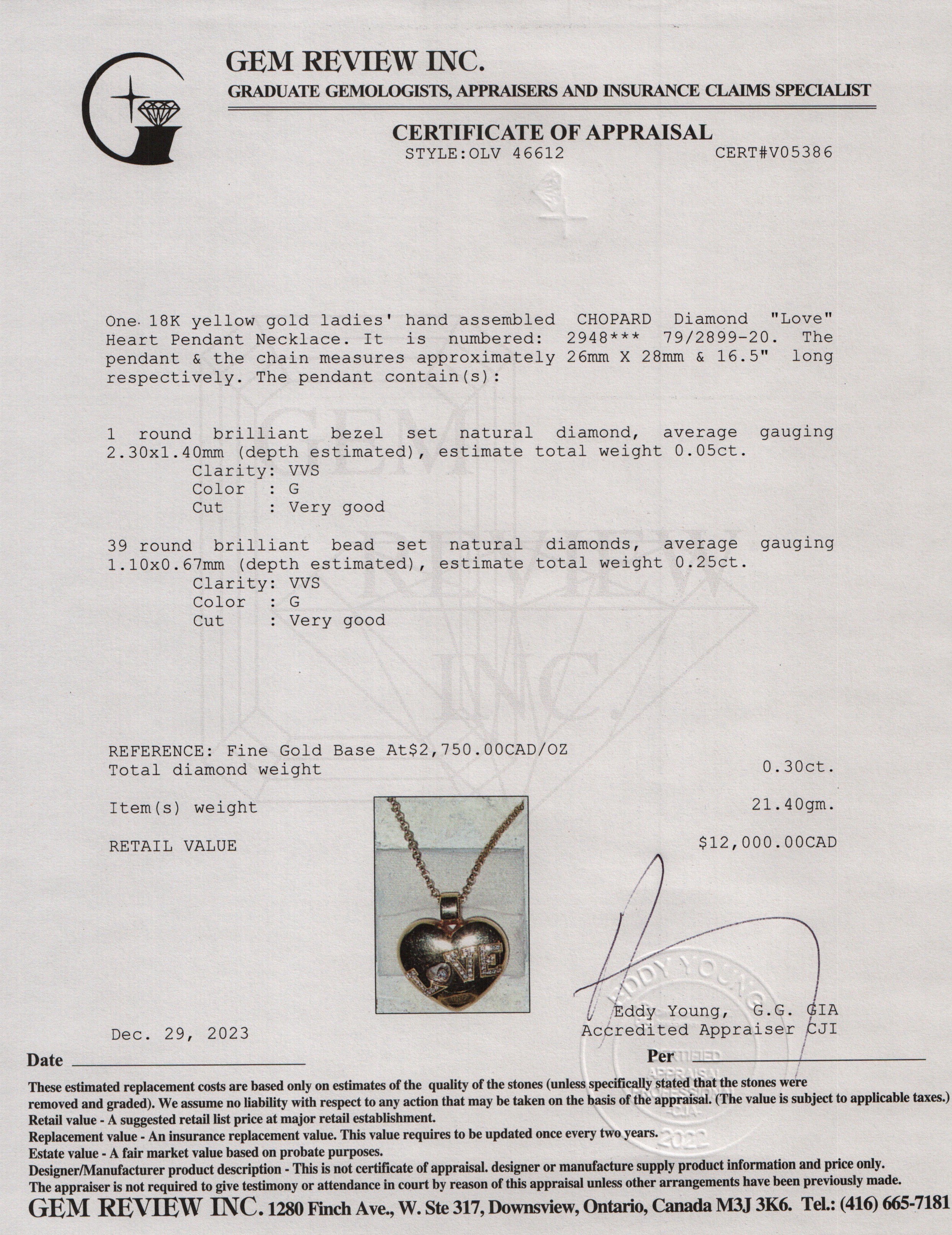 18k Yellow Gold Diamond "Love" Heart Pendant Necklace