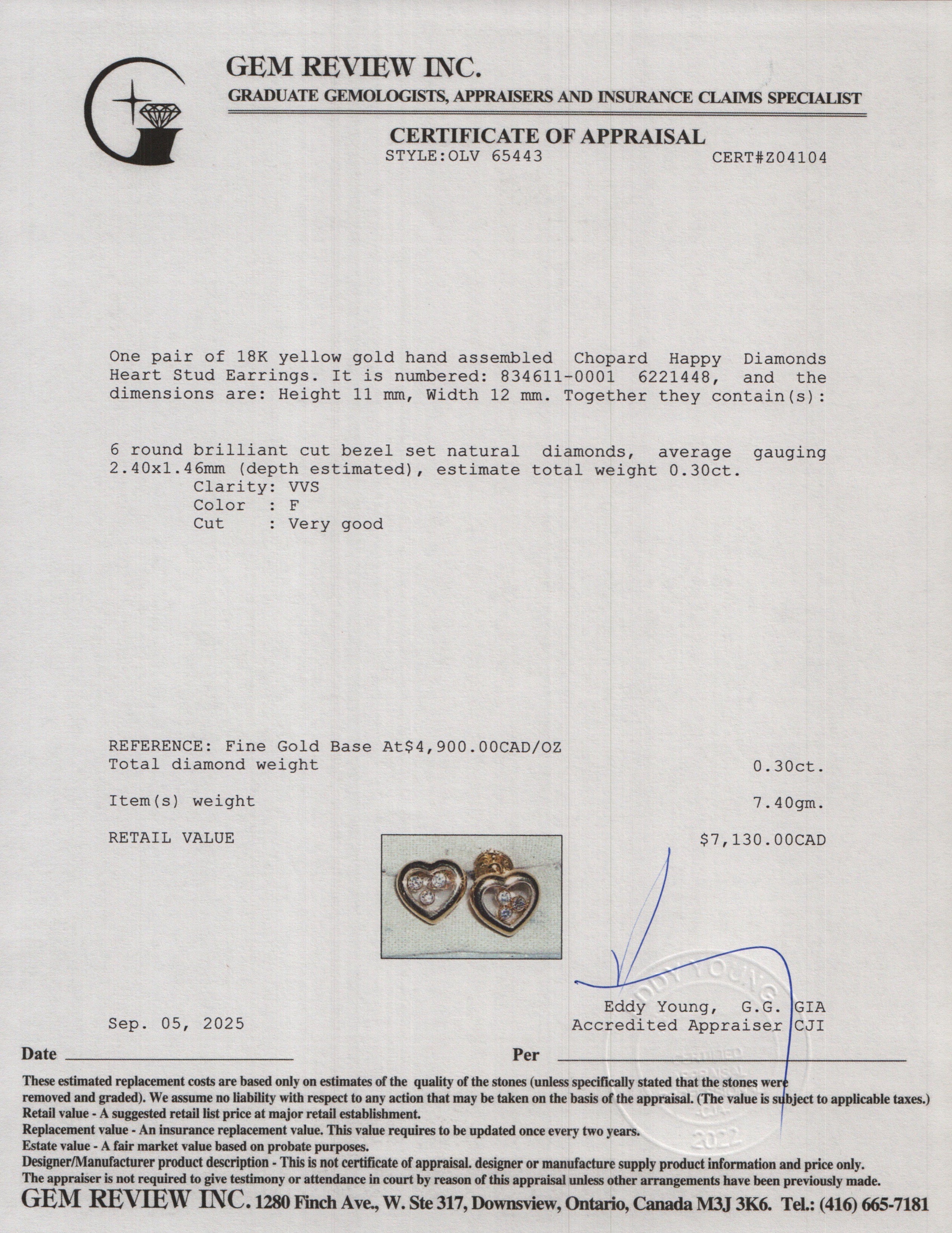 18k Yellow Gold Happy Diamonds Heart Stud Earrings
