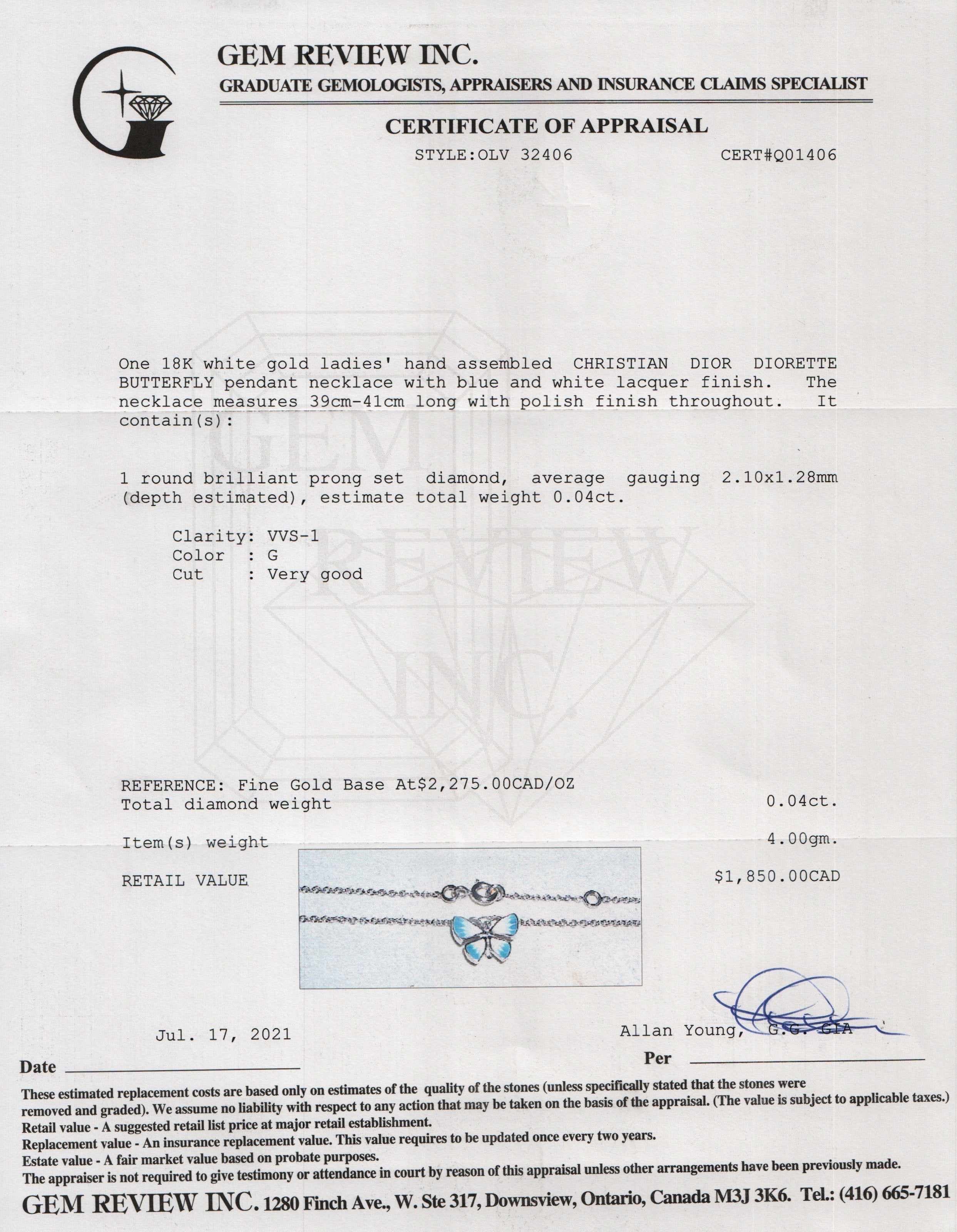 Christian Dior 18k White Gold Diorette Butterfly Pendant Necklace