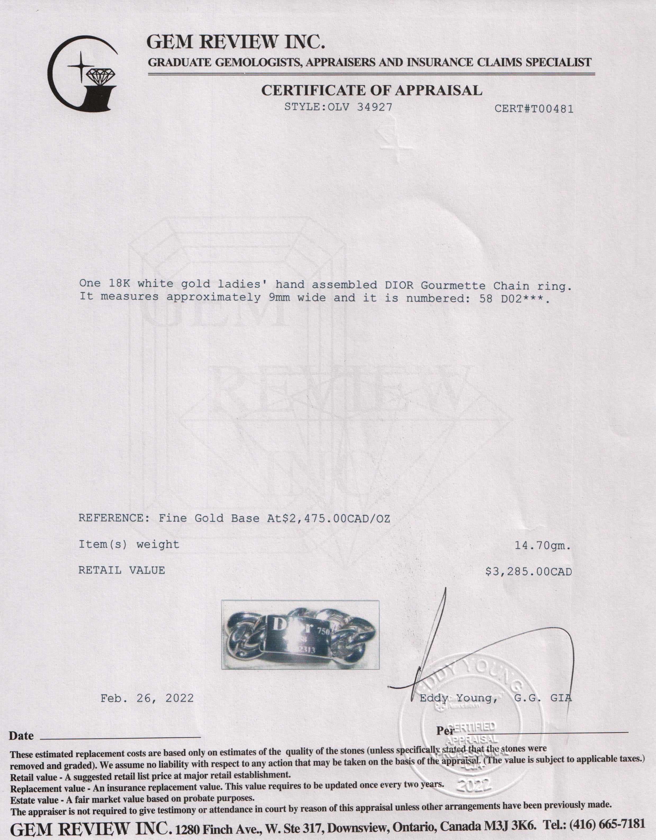 Christian Dior 18k White Gold Gourmette Chain Ring
