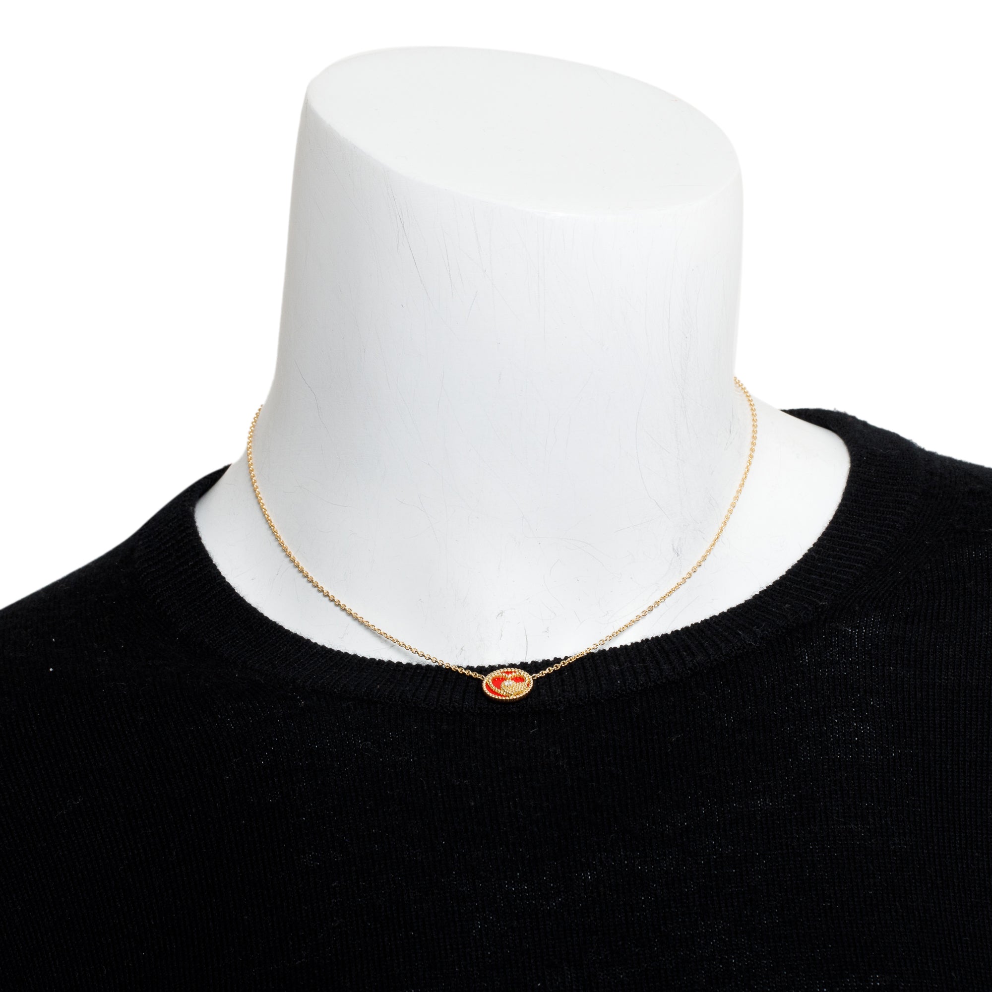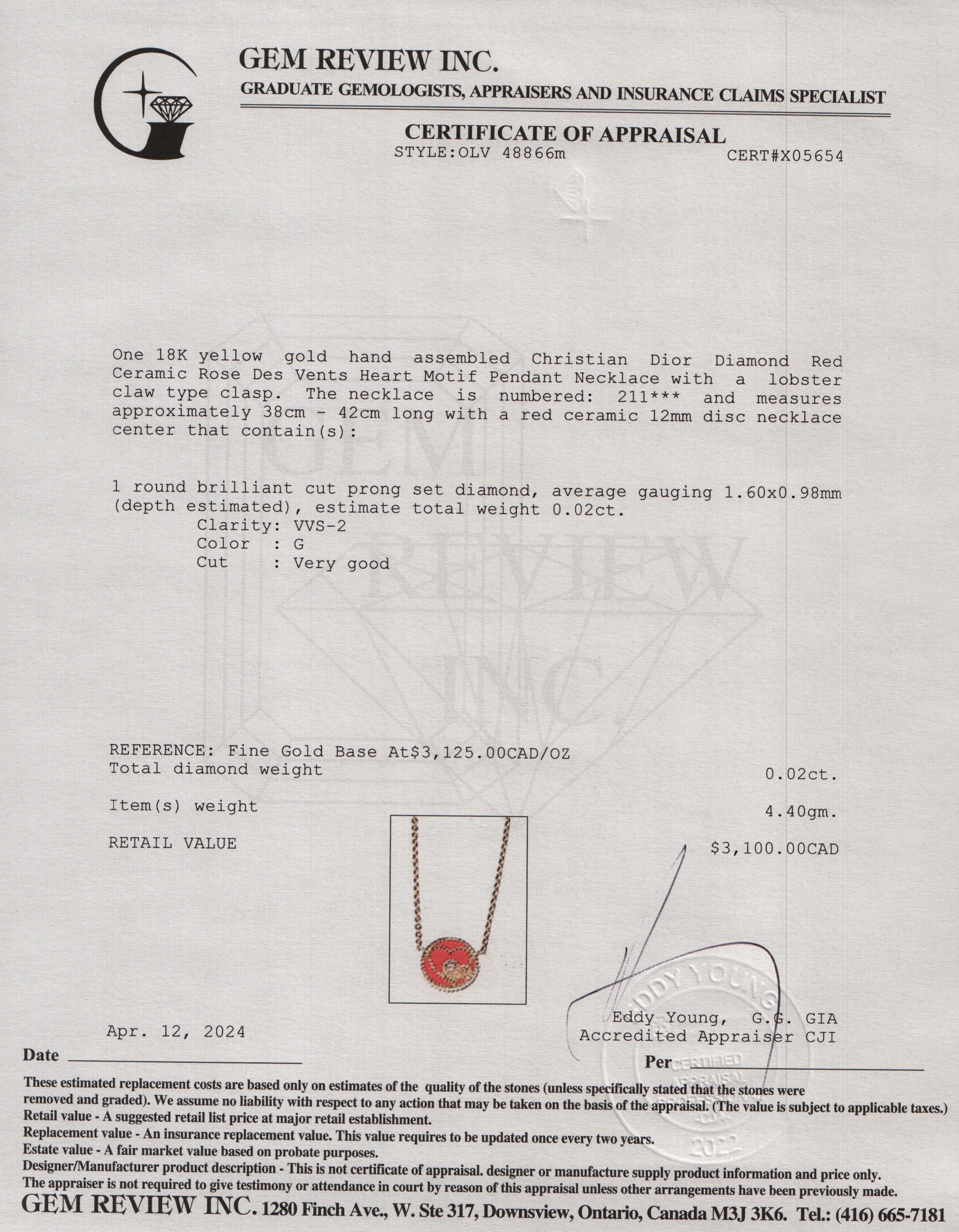 18k Yellow Gold Diamond Red Ceramic Rose Des Vents Heart Motif Pendant Necklace