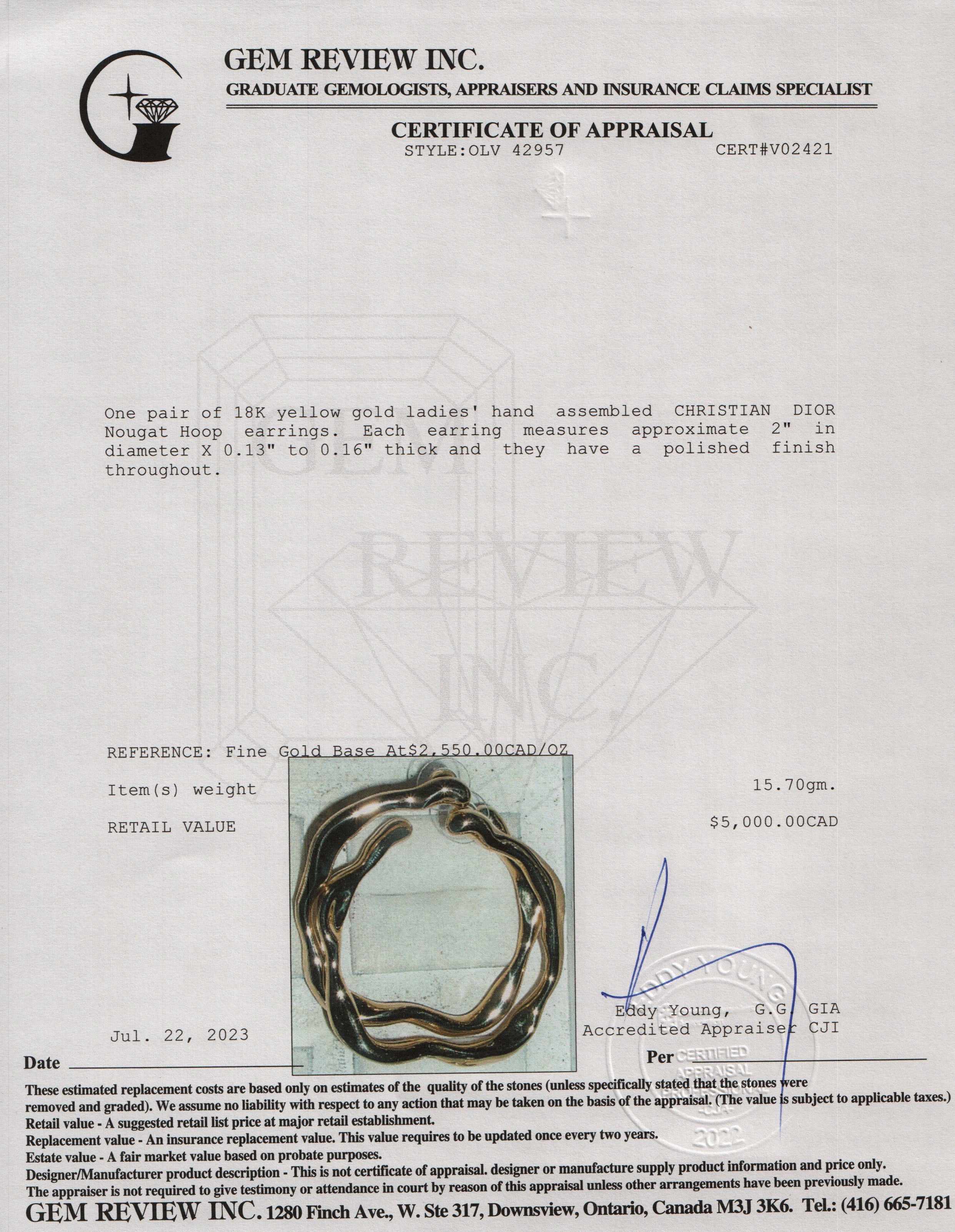 - Signature/Hallmarks: Dior Au750 18633