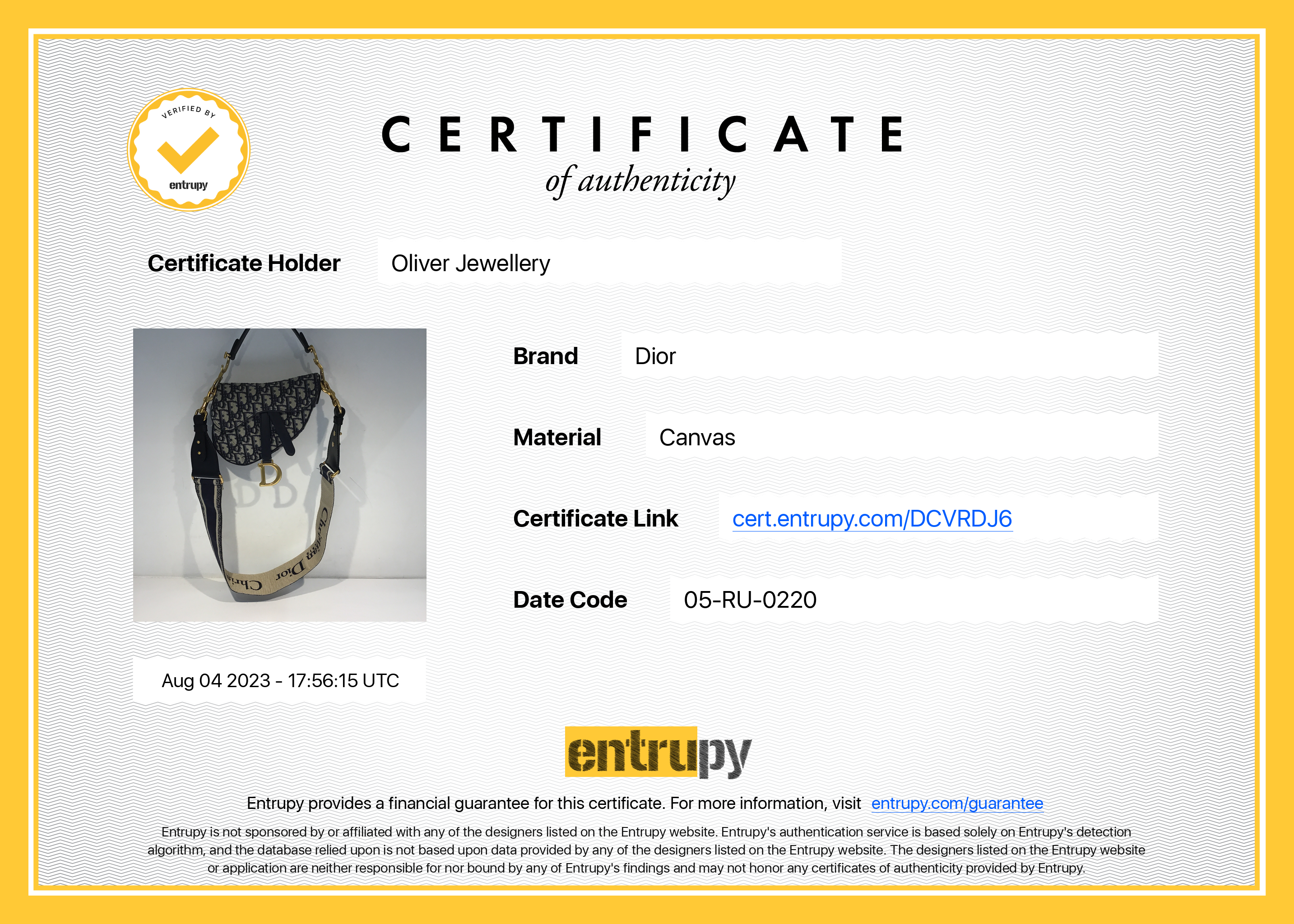 Included Items: Original Dior Dust Bag, Shoulder Strap and Entrupy Certificate of Authenticity: DCVRDJ6